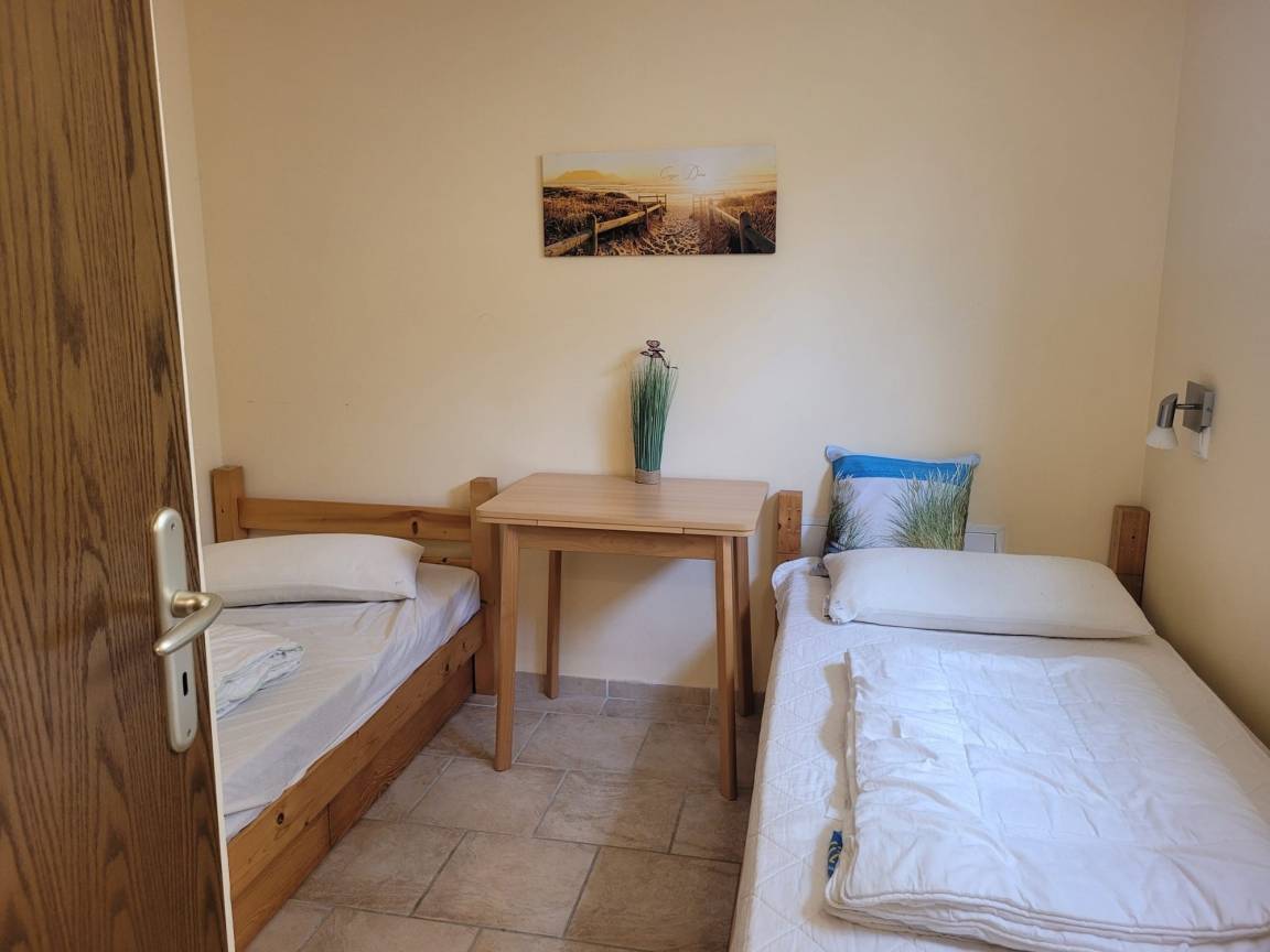 Schick eingerichtete Nichtraucher Ferienwohnung mit zwei Schlafräumen (Doppelbett 1,80 m x 2,00 m und 2 Einzelbetten 0,90 m x 2,00 m) und einer modernen top eingerichteten Küche. Für ein zusätzliches KInd kann noch ein Klappbett aufgestellt werden.