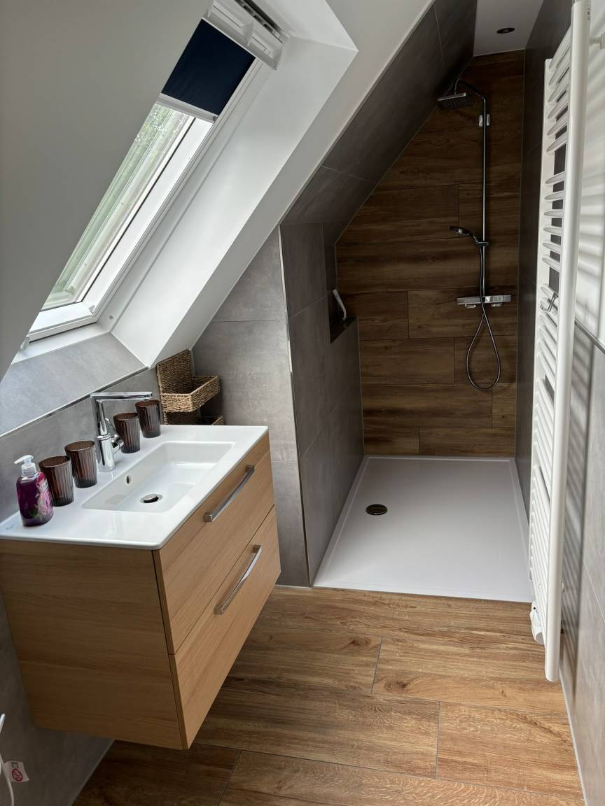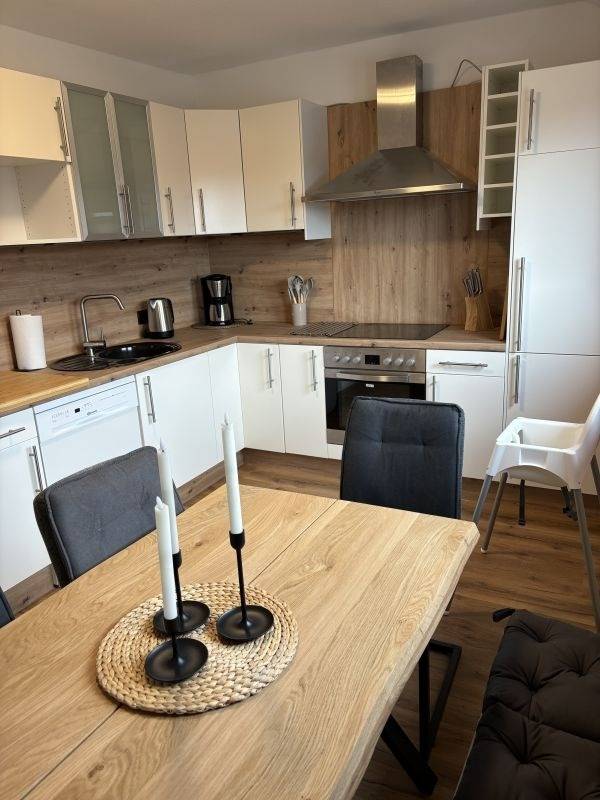 Diese Wohnung befindet sich im Dachgeschoss des Hauses und hat eine Größe von ca. 82 m². Sie verfügt über 2 Schlafzimmer, die jeweils mit einem komfortablen Doppelbett (Boxspring) für erholsame Nächte und 1 Schlafzimmer, welches sich im Spitzboden befindet, mit zwei Einzelbetten ausgestattet ist. Eine voll ausgestattete Küche für Selbstversorger und ein gemütliches Wohnzimmer mit TV. Kostenloses W-Lan steht ihnen ebenfalls zu Verfügung. Außerdem ein modernes Badezimmer mit bodentiefer begehbarer Dusche und einem Haarföhn. Zudem steht im Keller eine Waschmaschine und ein Trockner zur Verfügung. Abstellmöglichkeiten für Fahrräder, Schlitten, etc sind vorhanden. Außerdem gibt es eine Parkmöglichkeit pro Wohnung auf dem Grundstück. Die Wohnung verfügt über Bettwäsche und Handtücher. Haustiere sind erlaubt! Geben Sie dies zusätzlich bei der Buchung an.