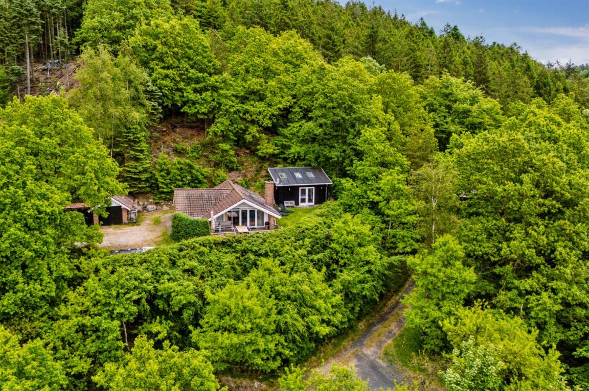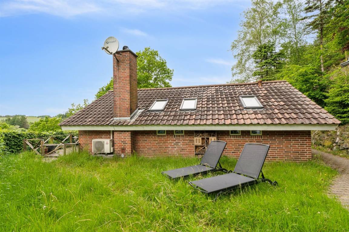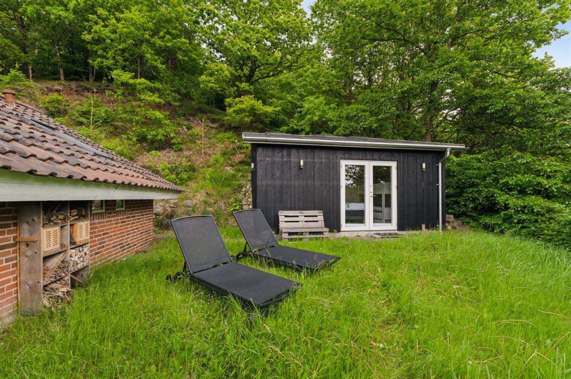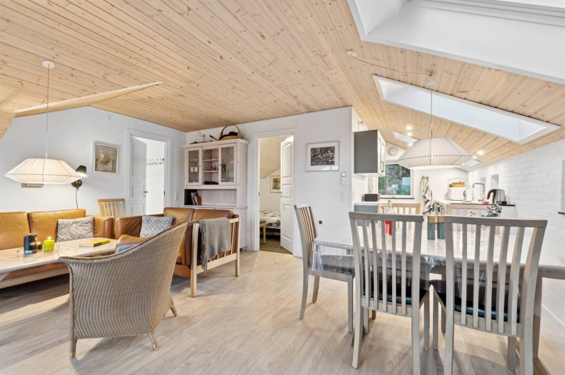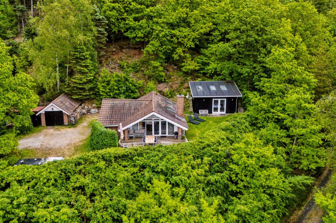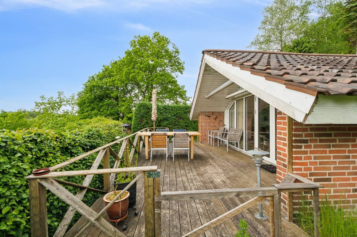 Mitten in der wunderschönen Natur, südlich von Karlsø, liegt dieses schöne und sehr gepflegte Ferienhaus. Das Ferienhaus liegt ungestört auf einem 2310 m² großen Naturgrundstück. Der Ausblick von der schönen Terrasse und auch vom Inneren des Hauses aus ist atemberaubend – hier fühlst du dich wirklich im Einklang mit der Natur.