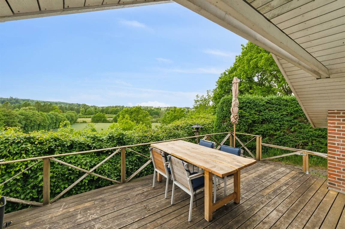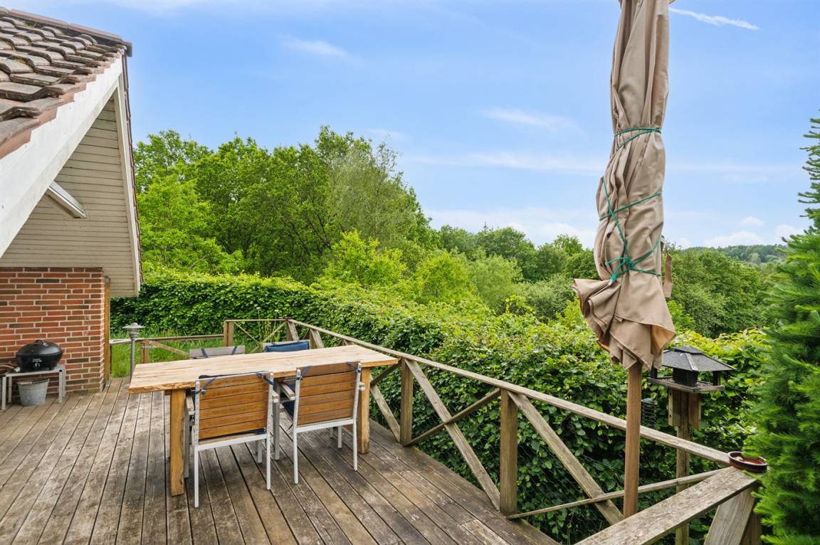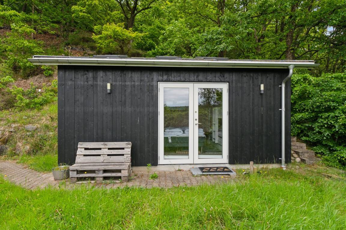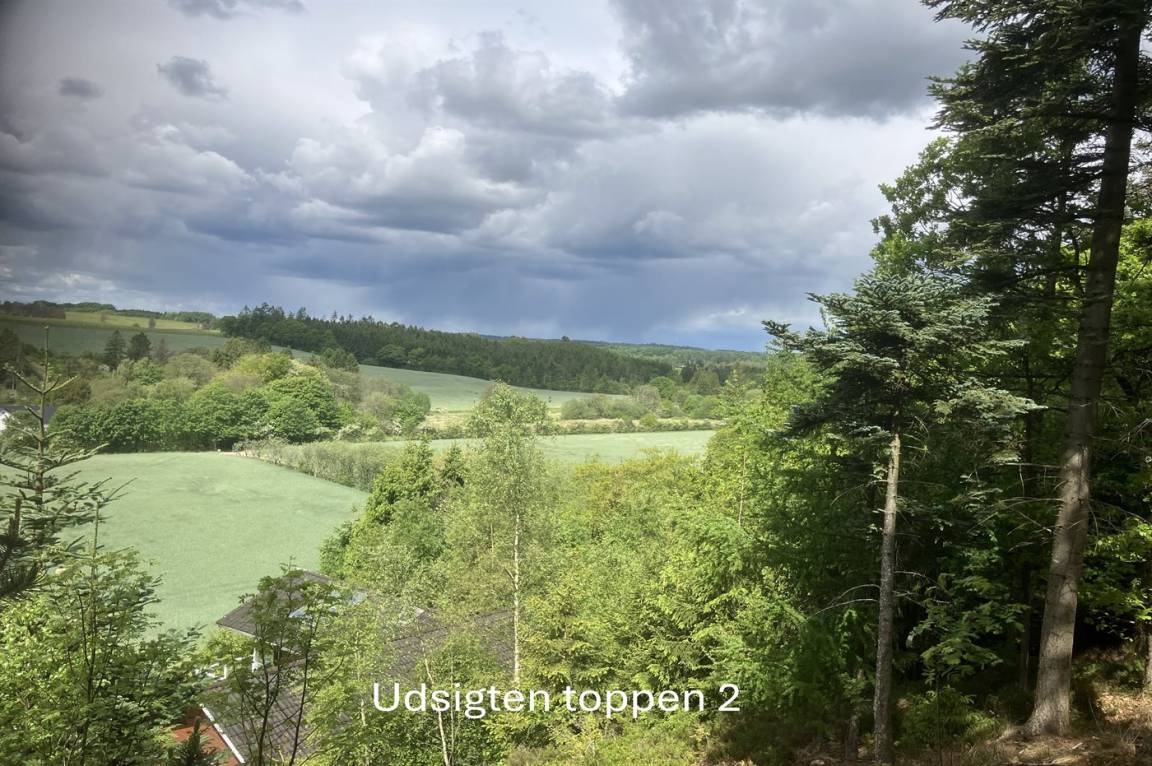 Das Grundstück ist groß und leicht hügelig, weshalb es hinter dem Haus einen tollen Aussichtspunkt gibt, wo eine Bank aufgestellt ist. Hier kannst du, als etwas ganz Besonderes, die Aussicht auf die wunderschöne und friedliche Natur genießen.