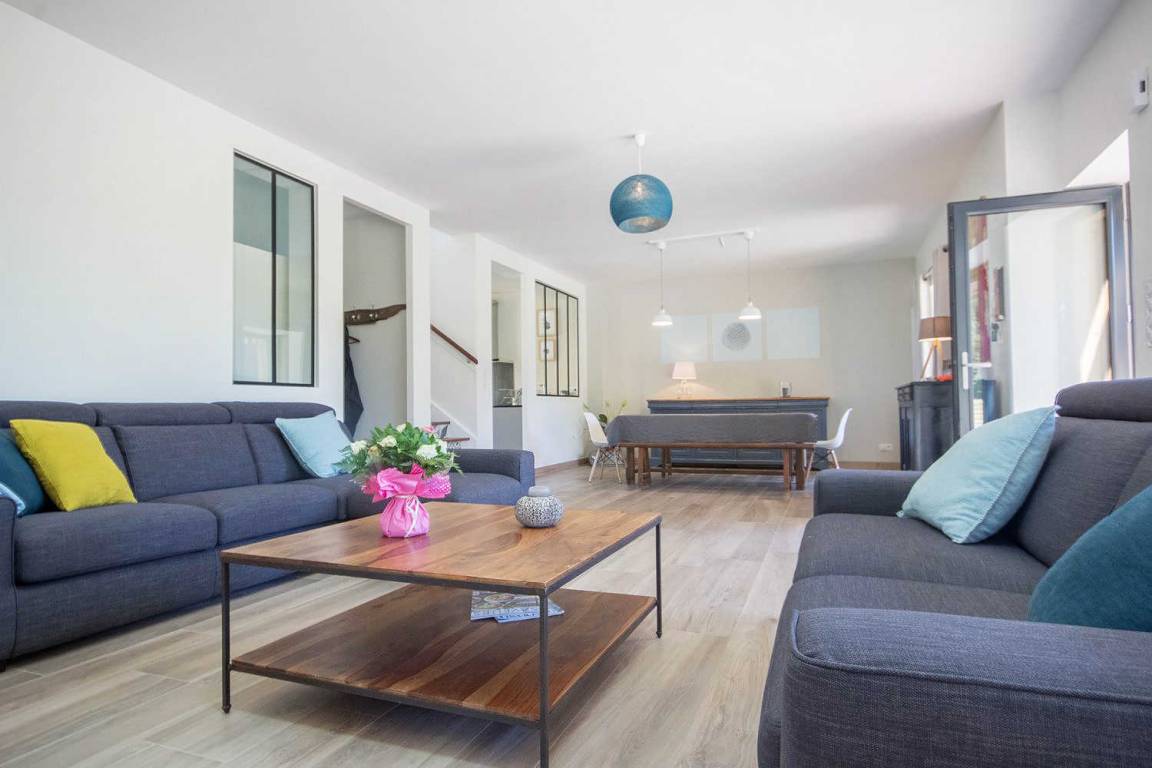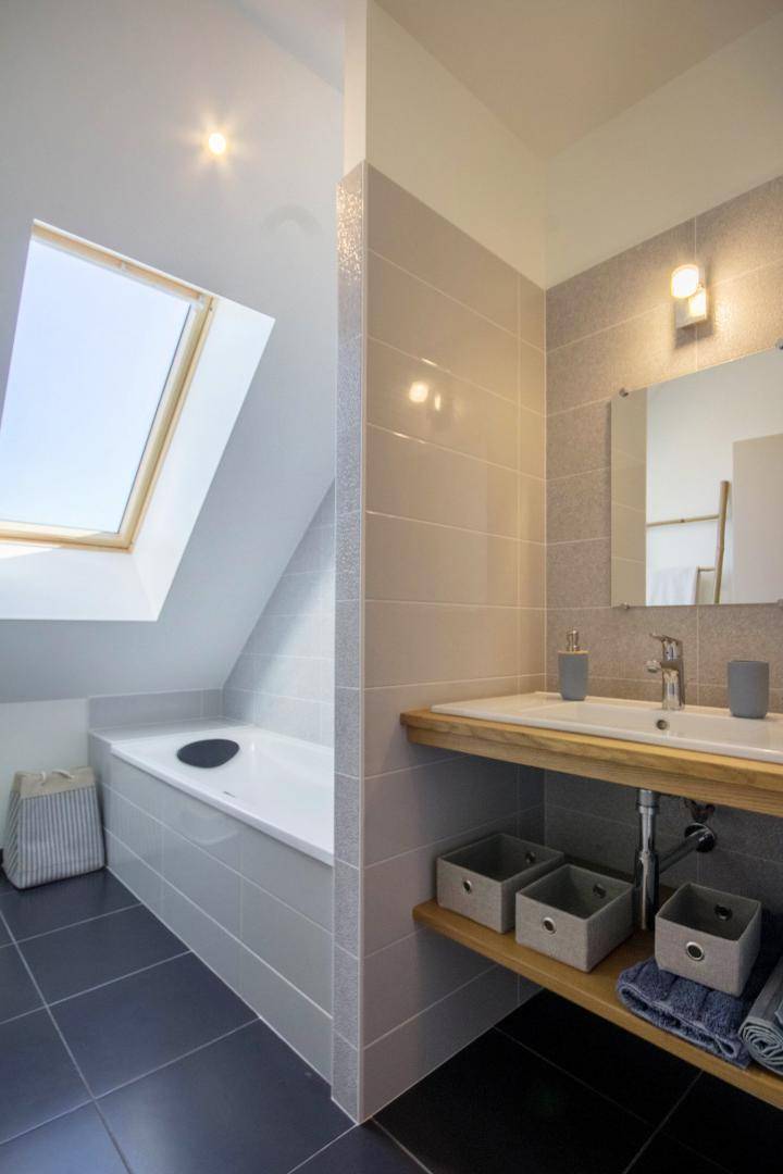Absolut außergewöhnlich! Ein Urlaub im Ferienhaus Ty Lise, schöner Neubau aus Holz mit 230 m² Wohnfläche (inklusive Spielbereich) auf einem 1400 m² großen Grundstück. großer Garten und beheizter Pool im Freien (nicht überdacht, 8 x 4 m und zugänglich bis Ende Sept). Unterhaltung für Klein und Groß: Spielsaal 85m², Billard, Tischtennisplatte, Tischfußballspiel. Holzterrasse mit Grill, Planchagrill (Gas vorhanden).Großflächiges helles Ferienhaus, modern und geräumig, vollständig neu ausgestattet. Erdgeschoss: Wohnbereich mit Wohnzimmer in Südlage, Essbereich, voll ausgestattete Küche, 1 Schlafzimmer (1 Bett 160), Bad mit Dusche und WC. 1. Stock: 2 Zimmer mit je einem Doppelbett 160 (davon 1 auseinanderstellbar in 2 x 80), Badezimmer, WC. 3. Zimmer: Familiensuite (1 Bett 160, 2 Betten 90) auf Mezzanin mit eigenem Bad mit Dusche. Parkplätze vor Ferienhaus (Schotter). Elektr. Heizung, Stromkosten inklusive. Tischwäsche vorhanden. Bei Miete von Bettwäsche sind die Betten bei Ankunft gemacht.