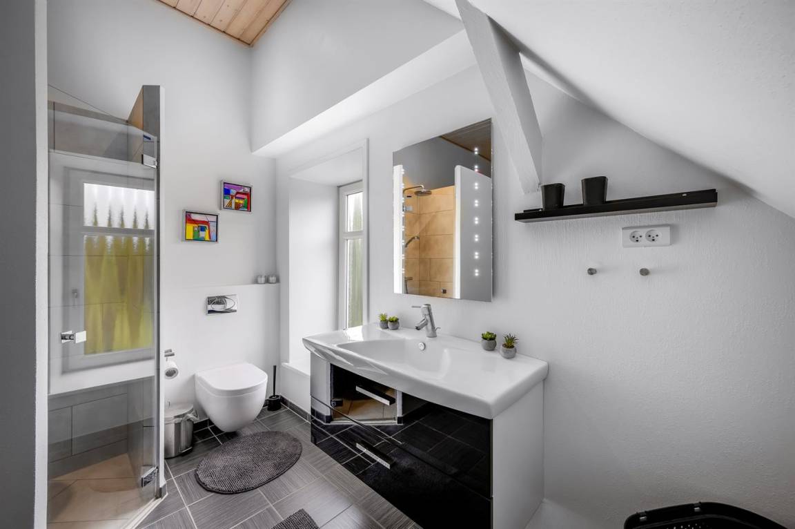 WC und BadEs gibt 2 Badezimmer mit Duschnische und 3 Toiletten, davon 1 Gästetoilette. Fußbodenheizung in 2 Badezimmern. Fußbodenheizung in der Gästetoilette.. Badewanne.