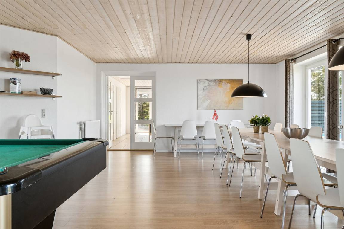 „The vacation at the holiday home: Der var ikke 24 stole i spisestuen, og de var ikke ret behagelige at sidde i. Resten af inventaret var fint. Der manglede også teskeer. Gulvvarmen i det store opholdsrum virkede ikke. Departure and follow up: Meget praktisk at nøglen ikke skulle hentes og afleveres. The holiday home itself: Vi havde et fint ophold. god plads og fine værelser. Gode aktiviteter for børn og voksne indendørs. Vi havde små børn med, så den åbne halvtomme udendørs pool var en udfordring. Det ville være virkeligt godt hvis den havde været overdækket. Vi vil klart anbefale huset til andre.“