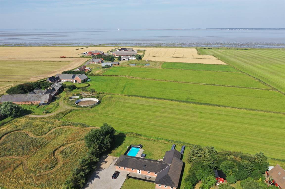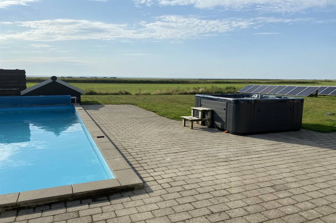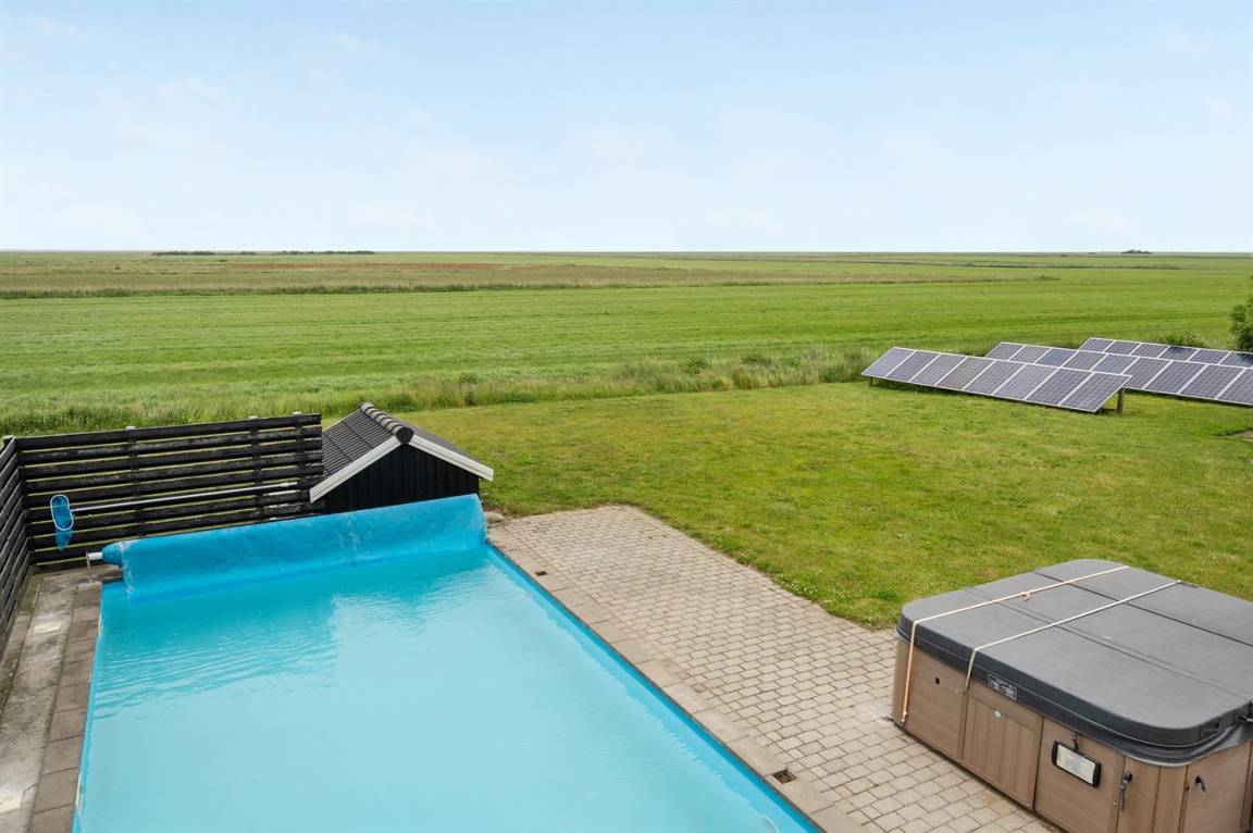 Dieses besonders Ferienhaus mit Außenswimmingpool und 9-Pers. Außenwhirlpool (Standwasser) liegt auf einem Gartengrundstück dicht am Wattenmeer. Sowohl vom Haus als auch vom Grundstück gibt es Aussicht über das Meer. Der Swimmingpool (8,0 x 5,0 x 1,2 m) kan nur im Zeitraum vom 01. Mai bis zum 30. September benutzt werden. Zum Haus gehört eine große Terrassenfläche mit Gartenmöbeln. Ein schönes Ferienhaus für einen entspannenden Urlaub für mehrere Familien - in einem ruhigen, naturschönen Feriengebiet.