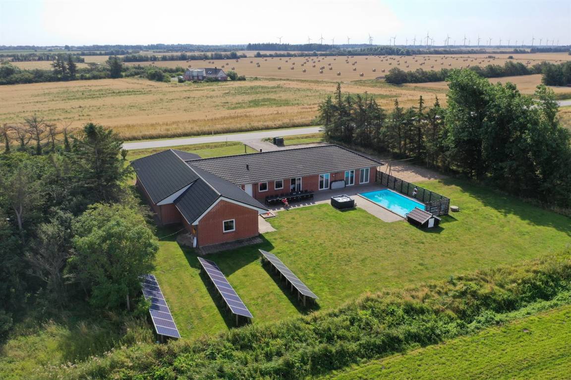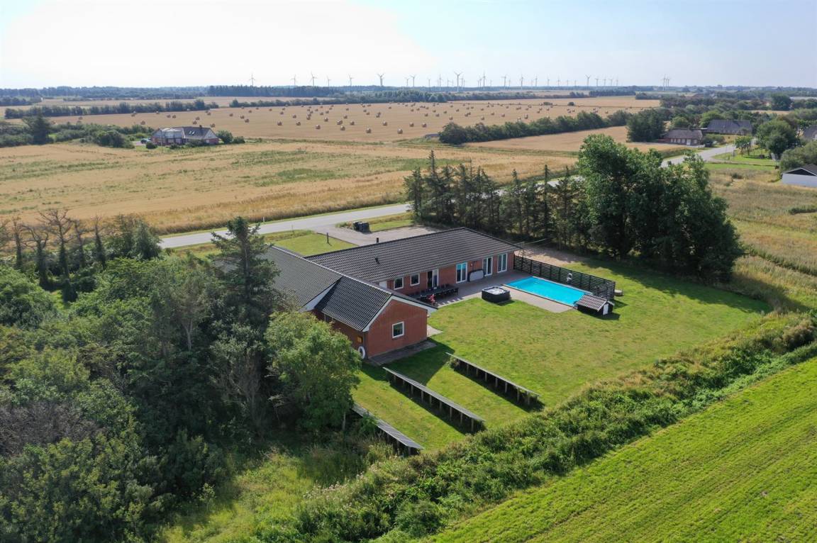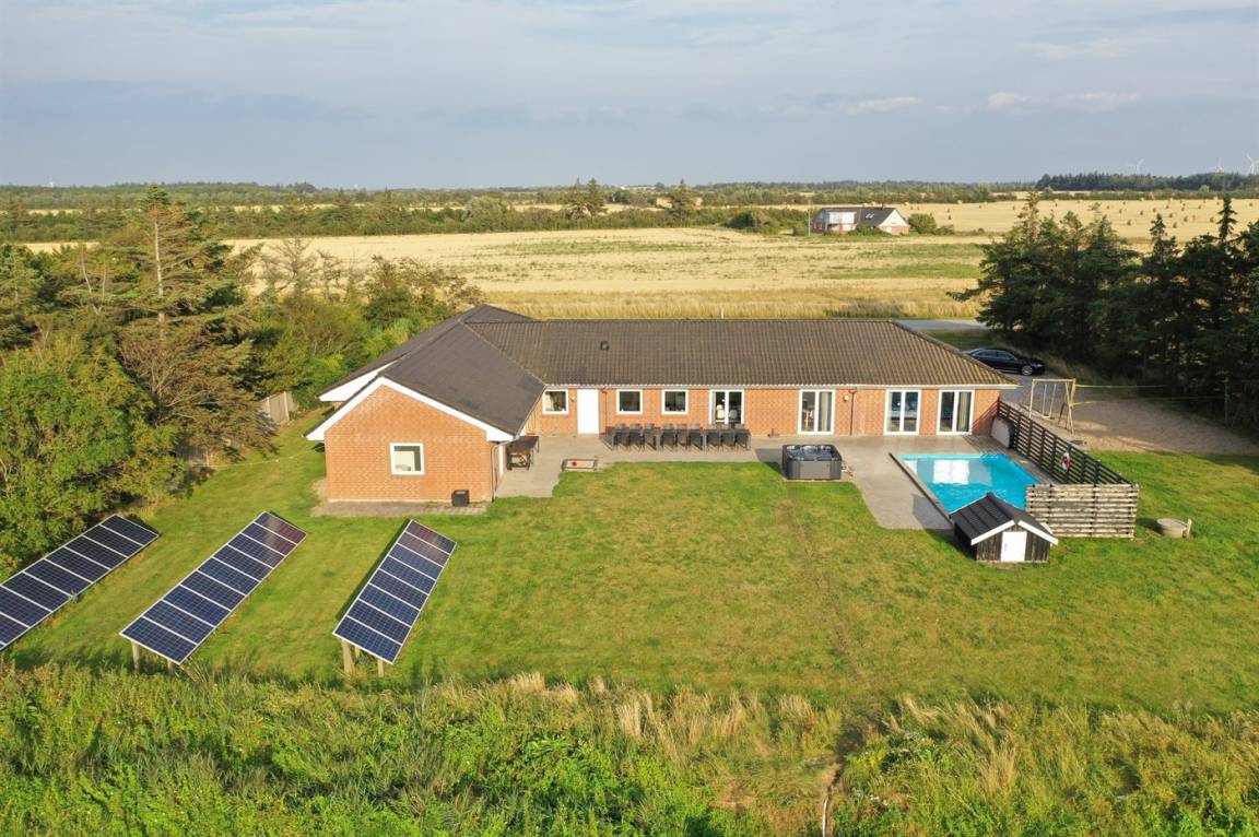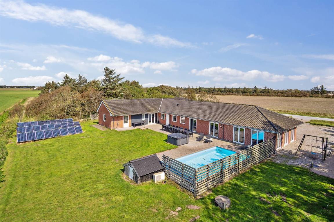 Dieses besonders Ferienhaus mit Außenswimmingpool und 9-Pers. Außenwhirlpool (Standwasser) liegt auf einem Gartengrundstück dicht am Wattenmeer. Sowohl vom Haus als auch vom Grundstück gibt es Aussicht über das Meer. Der Swimmingpool (8,0 x 5,0 x 1,2 m) kan nur im Zeitraum vom 01. Mai bis zum 30. September benutzt werden. Zum Haus gehört eine große Terrassenfläche mit Gartenmöbeln. Ein schönes Ferienhaus für einen entspannenden Urlaub für mehrere Familien - in einem ruhigen, naturschönen Feriengebiet.