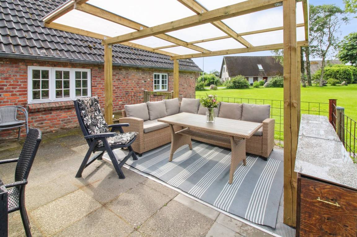 Schönes Ferienhaus aus Stein, 1877 gebaut und 2009 renoviert. Das Haus liegt auf einem Gartengrundstück mit einem großen Rasen, wo die Kinder spielen können. Zum Haus gehört ein großes, offenes Terrassenareal mit Gartenmöbeln und Grill. In der Mitte des Hauses liegt die Wohnküche mit Essplatz, Tiefkühlgerät, Herd mit Ceran-Feld, Umluftofen, Mikrowelle und Geschirrspüler. Das Wohnzimmer, mit Ausgang zur Terrasse, ist mit der Wohnküche kombiniert und enthält Kaminofen und TV. Aktivitätsraum mit Billardtisch und Tischtennistisch sowie ein Spielzimmer mit zusätzlichem TV, Airhockey und Tischfußball. Ferner kostenlose, kabellose Internetverbindung vorhanden (Computer ist mitzubringen). Die 10 Schlafplätze des Hauses verteilen sich auf 4 Zimmer mit Doppelbett sowie auf eine Doppelschlafcouch im Wohnzimmer. Es gibt 2 schöne Badezimmer, beide mit Fußbodenheizung und Duschnische. Waschküche mit Waschmaschine und Wäschetrockner. Für die jüngsten Feriengäste stehen Kinderbett und Kinderhochstuhl sowie Sandkasten und Trampolin zur Verfügung. Holzböden, jedoch Klinkerböden in den Badezimmern. Das Haus wird mit Erdwärme beheizt. Garage und Geräteraum auf dem Grundstück. Ein schönes und geräumiges Ferienhaus - vorzüglich für 2 Familien og mehrere Paare geeignet. Der Eintritt zur Indoor-Minigolfanlage in Ballum – Adventure Minigolf Vadehavet – ist kostenlos.