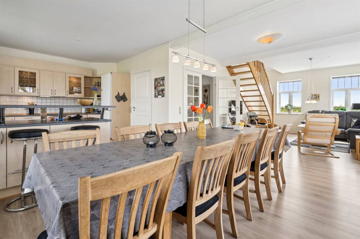 Dieses schöne Ferienhaus liegt mit einer phantastischen Aussicht auf das Wattenmeer - nur wenige Minuten Gang vom Wasser entfernt - in dem gemütlichen Marschort Ballum. Fußbodenheizung im ganzen Erdgeschoss. Übrigens; 4 der insgesamt 12 Schlafplätze verteilen sich auf eine Doppelschlafcouch im Wohnzimmer und auf eine Doppelschlafcouch im Hobbyraum.