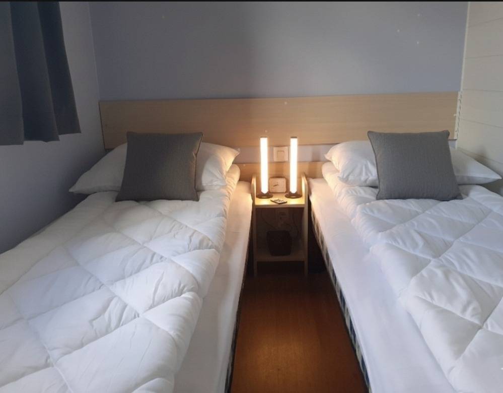Das Mobilheim verfügt über 2 Schlafzimmer .