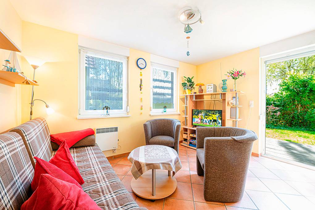 D 122.5A Ferienhaus 2-6 Pers.: Freundliches 3-Zimmerhaus mit 70 qm Wohnfläche über 2 Etagen. Parterre: Großzügiger Wohn-/Essraum mit Kaminofen, Couchgarnitur (Ausziehcouch 2 Pers.), Sat-TV, Esstisch, gut ausgestatteter Küchenzeile (Backofen, Spülmaschine, Mikrowelle).Separates WC. 1. Etage: 2 Doppelzimmer. Bad: Du, Bw, Wb, WC. Terrasse mit Sitzmöbeln.