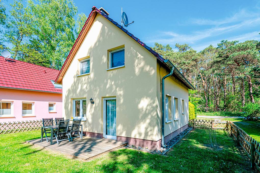 Haus: Schöne, kleine Ferienhausanlage am Rande eines Kiefernwaldes. Komfortables Haus mit Kaminofen und gehobener Ausstattung. Zentralheizung. Terrasse mit Sitzmöbeln, angrenzender Rasenfläche. 1 Pkw-Stellplatz vorhanden.