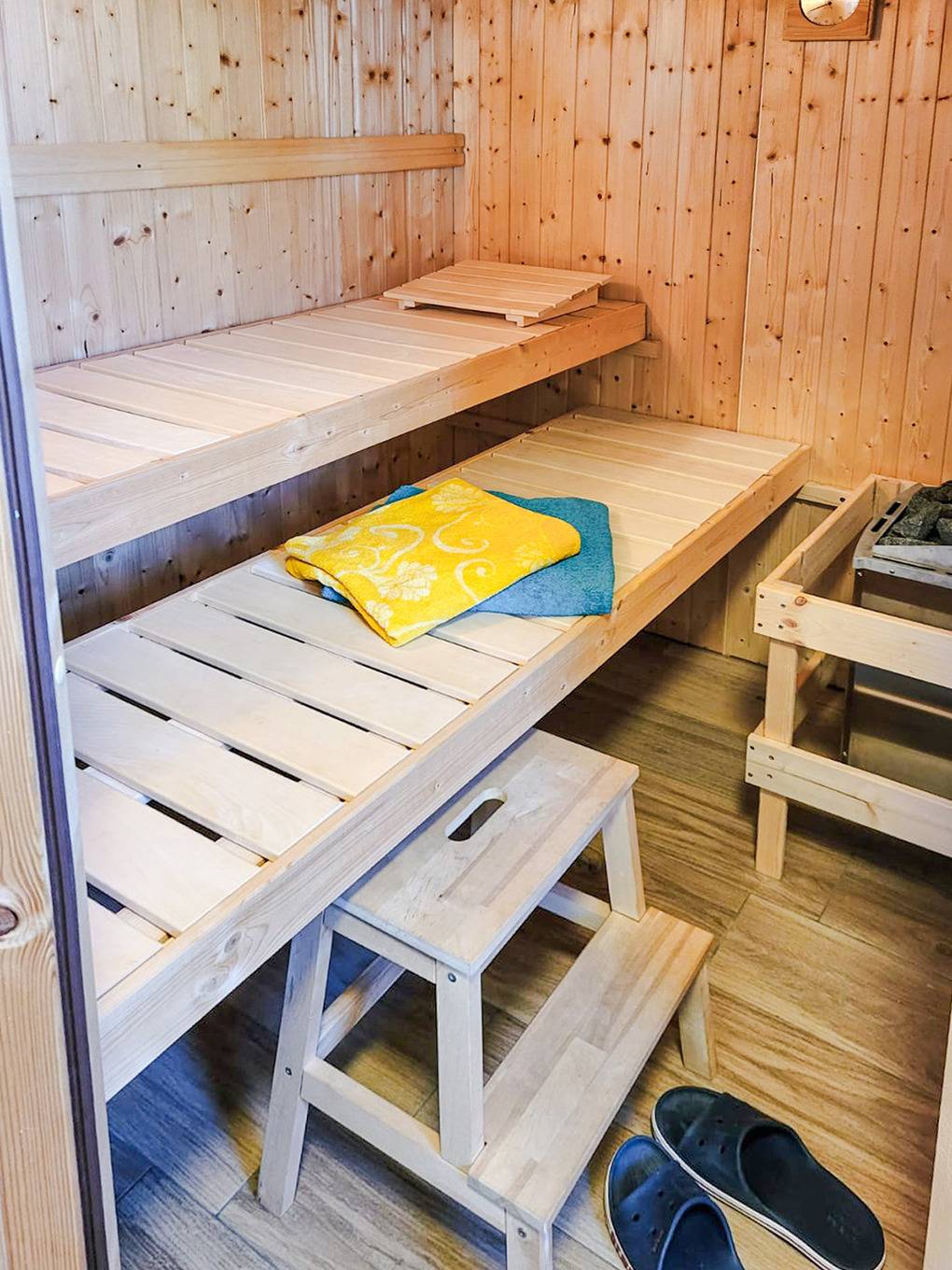 Haus: Komfortable Doppelhaushälfte mit Sauna und Kaminofen. Moderne, geschmackvolle Einrichtung. 4 Schlafzimmer, 2 Bäder. Kostenloser Internetzugang über W-Lan. Fußbodenheizung. Nichtraucherhaus. Terrasse mit Sitzmöbeln, kleiner Garten mit Rasenfläche. Gartenhaus. 2 Pkw-Stellplätze/Haushälfte.