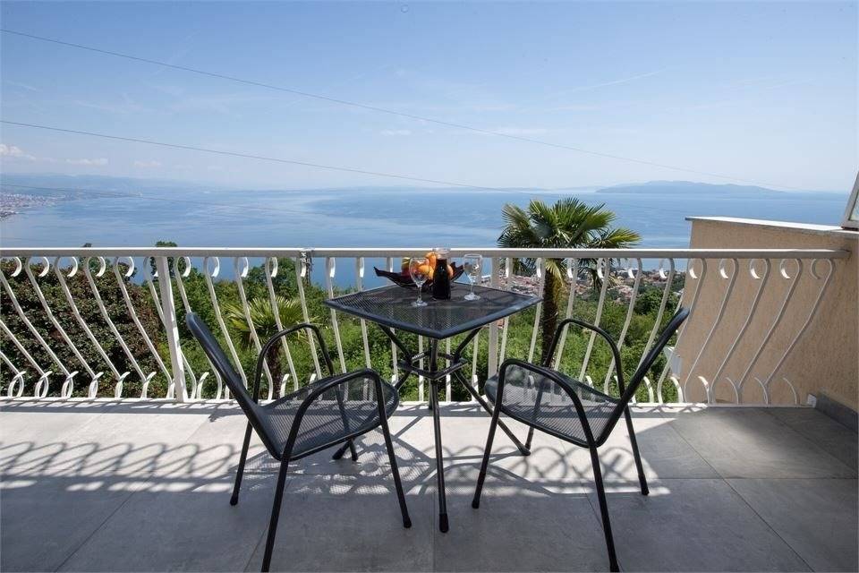 BELA VISTA - Rustikale Appartements über den Dächer von OpatijaOpatija, eine charmante Küstenstadt mit faszinierender Geschichte und Kultur, bietet viele wunderschöne Orte, beeindruckende Denkmäler, gepflegte Parkanlagen und prächtige Villen, die man bei einem Besuch dieser Stadt unbedingt erkunden sollte.Spazieren Sie die Küstenpromenade Lungomare entlang, besuchen Sie die Freilichtbühne den Veranstaltungsort vieler musikalischer Ereignisse, und entdecken Sie das Symbol von Opatija die Statue Mädchen mit der Möwe. Eine herrliche Kirche im Stadtzentrum, die prächtige Villa Angiolina mit gleichnamigem Park, Skulpturen, die von namhaften Künstlern erstellt wurden all dies und vieles andere mehr wartet auf Sie in Opatija. Opatija ist der Mittelpunkt der Riviera, die an einer 30 Kilometer langen Küstenlinie zwischen den grünen Hängen des Berges Učka und dem blauen Meer liegt. Sie werden von der einmaligen Mischung aus malerischen, gepflegten Ortschaften und der unberührten wilden Natur begeistert sein.APPARTEMENTSErleben Sie einen perfekten Urlaub oberhalb der Kvarner Bucht, in der Nähe des Naturparks Ucka, wo sich die kleine Ortschaft Bregi befindet. Die Appartements sind geschmackvoll, rustikal und komfortabel eingerichtet.Diese Appartements sind im wahrsten Sinne des Wortes ein kleines Anwesen wie im Märchen. Mit einem wunderschönen angelegten Garten. Im südwestlichen Teil des Hauses gibt es eine Wellness- Oase im Außenbereich mit einem schönen großen Außen-Whirlpool, eine Panorama- Sauna sowie einen Grill mit rustikaler Holzgarnitur und einer Feuerstelle.Entspannen Sie in der Panorama- Sauna, erfrischen Sie sich im Whirlpool und genießen Sie vom Balkon den Ausblick auf das Blau des Meeres und das Grün der idyllischen Wälder. Verbringen Sie gesellige Stunden im Garten oder im rustikalem Appartement mit einer komplett ausgestatteten Küche . Das Grundstück ist schön angelegt und mit dem Auto erreichen Sie schnell die Strandpromenaden und Badestrände, wo Sie sich im kristallklaren Meer erfrischen können.Die Appartements sind von Sonnenaufgang bis Sonnenuntergang in Sonne und Tageslicht getaucht und bieten einen wunderschönen Blick auf die Gewässer von Rijeka, die Inseln und Opatija. Es ist eine einzigartige Gelegenheit den maximalen Komfort, Bequemlichkeit, Privatsphäre und die Schönheit unberührter Natur zu erfahren.Besuchen Sie kulturelle Veranstaltungen, Konzerte und hervorragende Restaurants in Opatija. Unternehmen Sie romantische Spaziergänge in den märchenhaften Wäldern des Nationalparks Ucka oder andere Ausflüge zu den umliegenden Inseln, sowie den Ortschaften in Istrien.