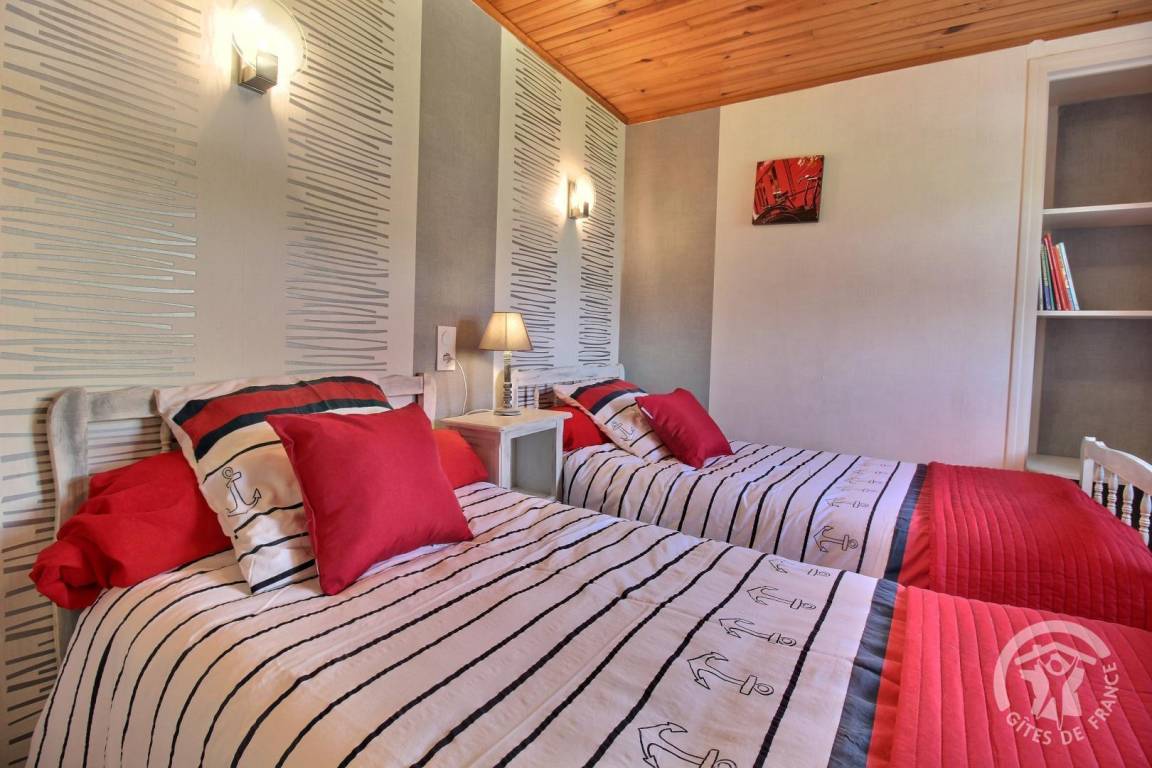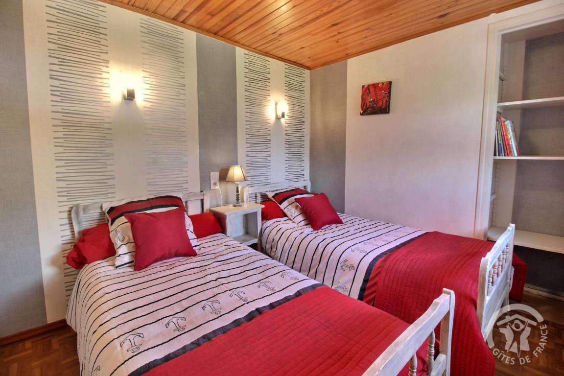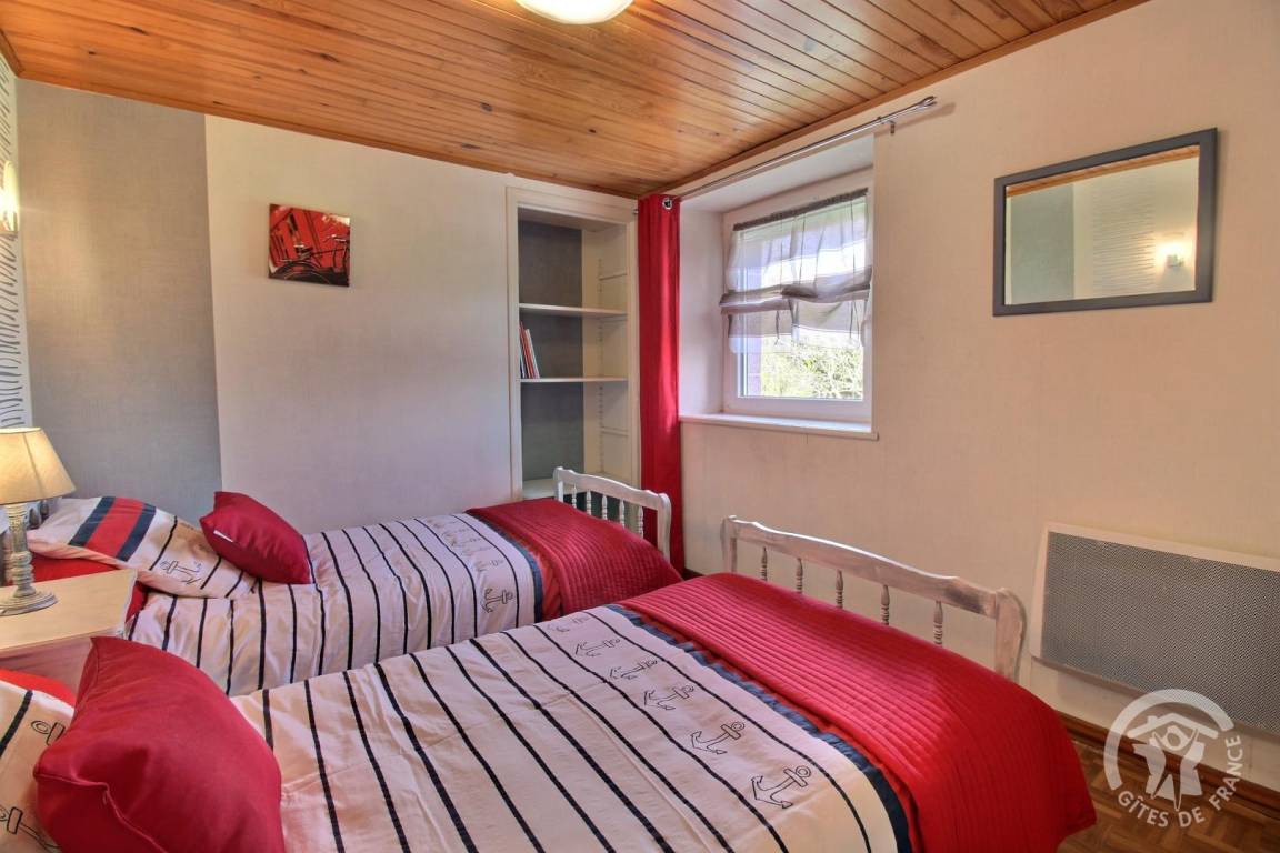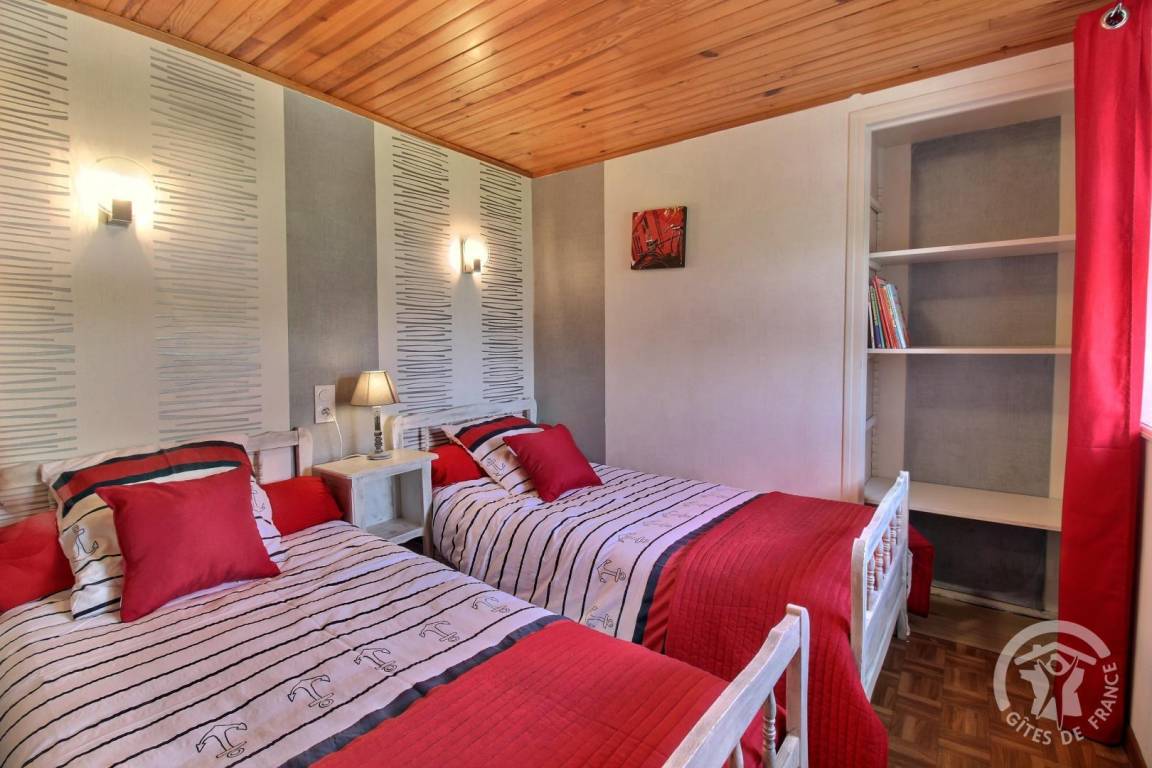 Ihre Ferienwohnung umfasst im Erdgeschoss eine offene Küche, ein Wohn-/Esszimmer, ein Badezimmer mit Badewanne, separates WC. Obergeschoss: ein Schlafzimmer mit einem 140x190-Bett und ein Schlafzimmer mit zwei 90x190-Betten. Hof mit Rasen an der Vorderseite, gemeinsam mit den Eigentümern. Auf der Rückseite Terrasse mit Garten von 400 m², die mit dem Eigentümer geteilt wird. Ein Spielzimmer mit Tischtennisplatte und Basketballkorb sowie eine Bocciabahn stehen Ihnen zur Verfügung.