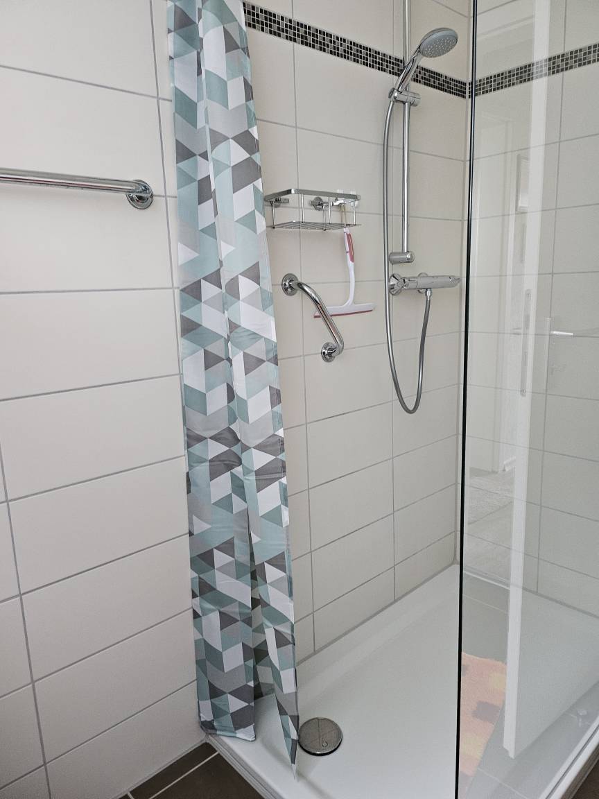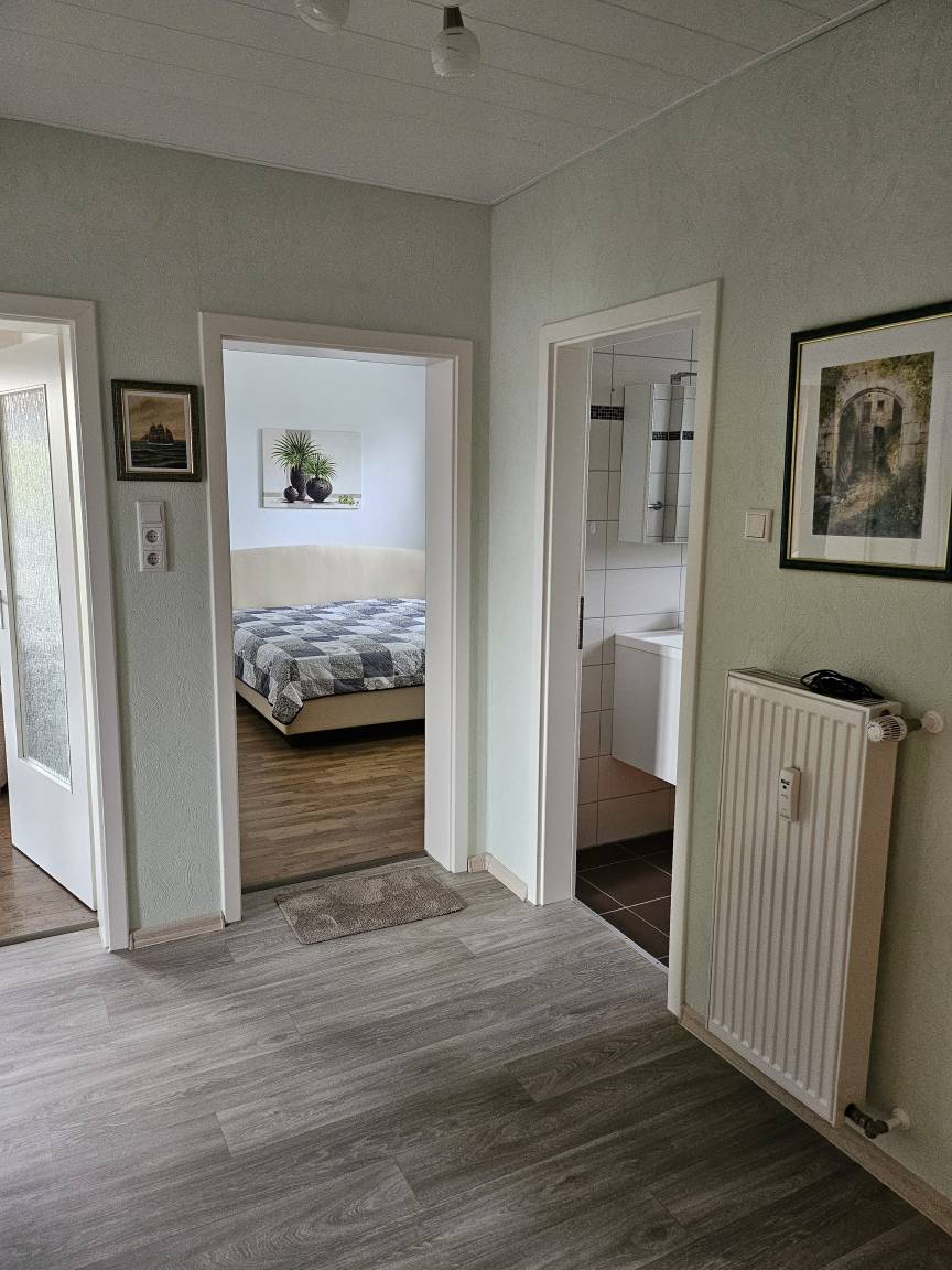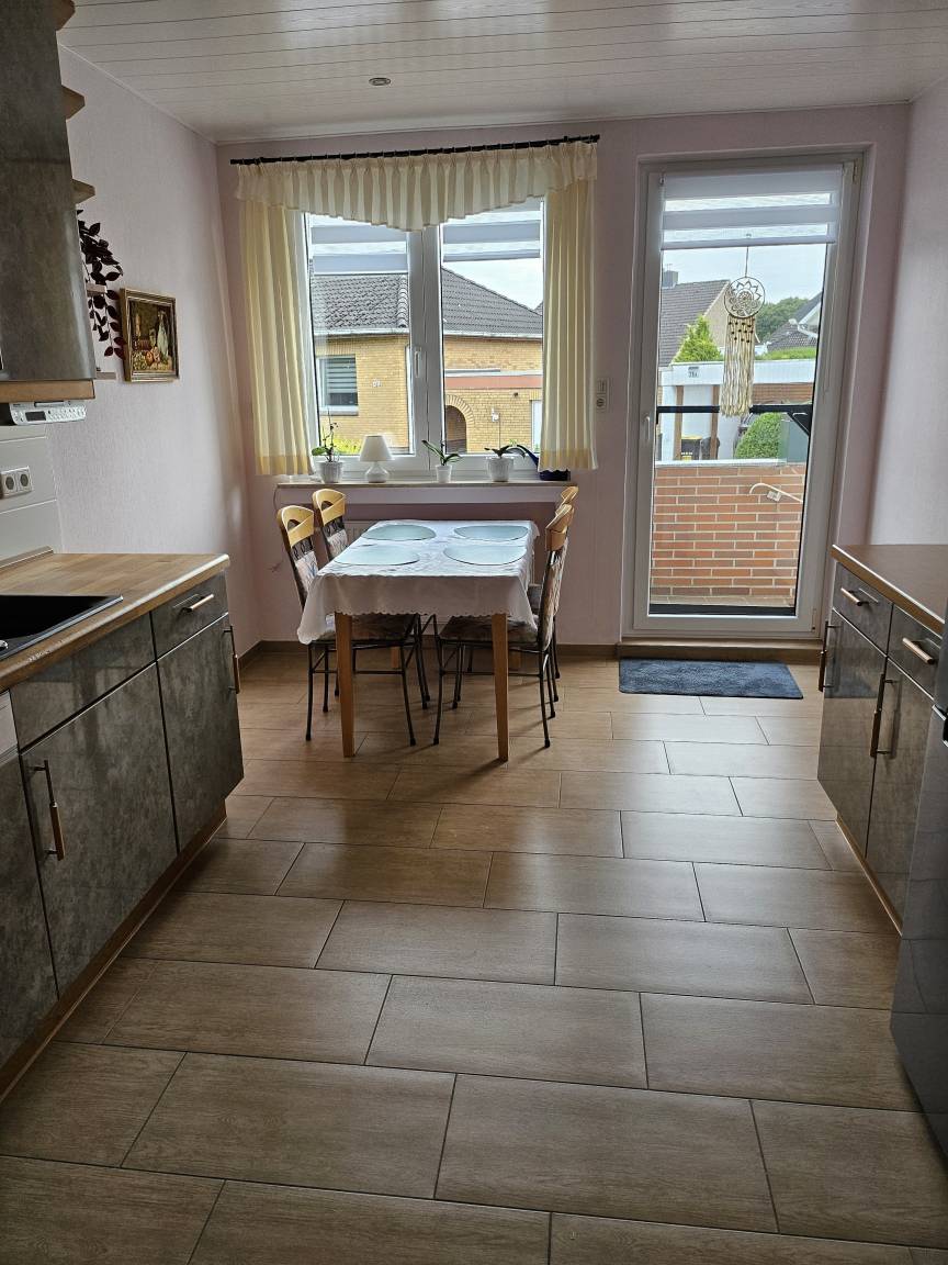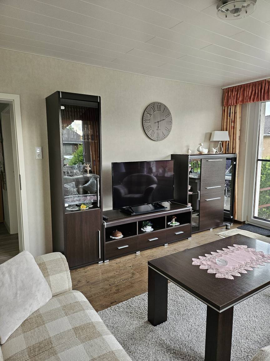 Diese helle und ruhige 3 Zimmer Wohnung befindet sich im Erdgeschoss eines 2 Familienhauses in einer ruhigen Wohngegend. Das Wohnzimmer, mit einer 3er, 2er und Sessel lädt zum Entspannen oder zum Fernsehen ein. Eine Terasse mit Tisch und Stühlen sowie eine Gartenliege ist durch eine Terassentür vom Wohnzimmer aus zu erreichen. Die große vollausgestattete Küche verfügt über einen schönen Essplatz an dem sie ihre Mahlzeiten, einen Kaffee oder Tee genießen können. Das 1. Schlafzimmer ist mit einem Doppelbett von 200x200cm und einem Kleiderschrank ausgestattet. Das 2. Schlafzimmer verfügt über ein Bett 90x200cm Bett sowie einem gemütlichen Sessel mit kleinem Tischchen und einer Vitrine mit 3 Schubladen. Das Badezimmer ist mit einer ebenerdigen Dusche und einem erhöhten WC ausgestattet und verfügt über ein Fenster. Bettwäsche und Handtücher incl.. Parkmöglichkeitenbefinden sich gegenüber vom Haus und für Fahräder haben wir einen Platz in der Garage.