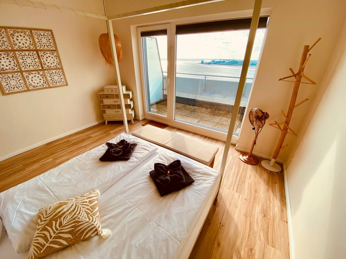 Mit drei Schlafzimmern und 106qm Wohnfläche bietet Bremerhavens höchste Wohnung 2-6 Personen ein "once in a lifetime" Erlebnis.