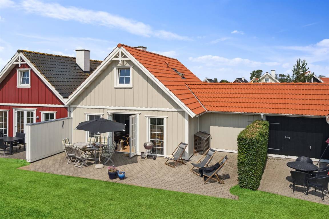 DraußenDie Ferienunterkunft liegt auf einem 300 m² großen Gartengrundstück. Die Entfernung zum Meer beträgt 300 m. Es gibt einen Badesteg in der Nähe. Die nächste Einkaufsmöglichkeit liegt 1000 m entfernt. Es steht ein 30 m² Terrassenareal zur Verfügung.Balkon im Obergeschoss. Geräteraum. Es stehen zwei Grill zur Verfügung (einer für Gaspatrone und einer für Kohle). Parkplatz auf dem Grundstück.