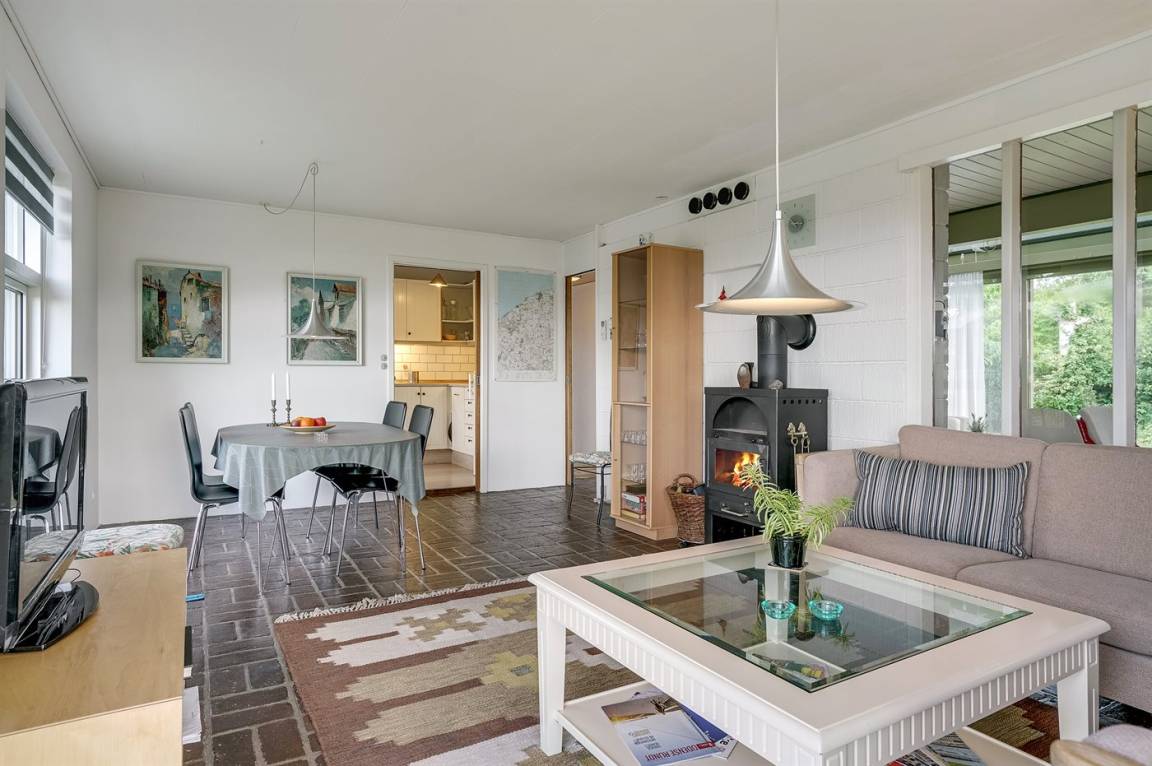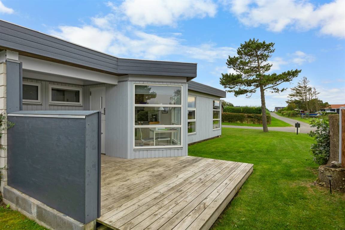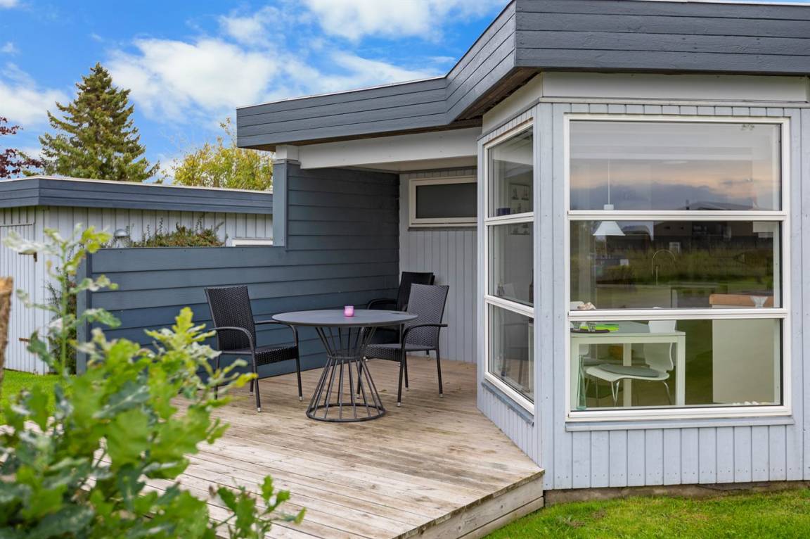 Mit Meeresblick sowohl vom Haus als auch vom Grundstück finden Sie dieses gemütlich eingerichtete Ferienhaus - in einem schönen und familienfreundlichen Feriengebiet. Übrigens: Die 2 Schlafplätze in Einzelbetten finden Sie in einem Gästehaus auf dem Grundstück.