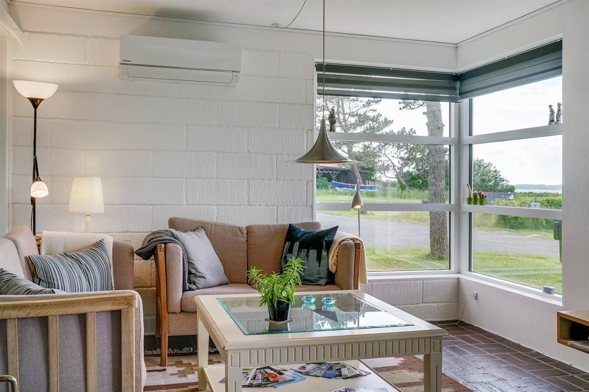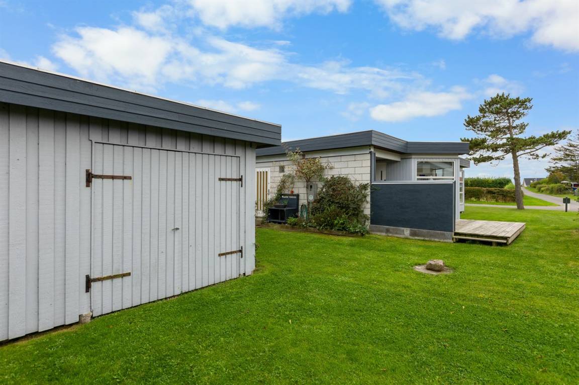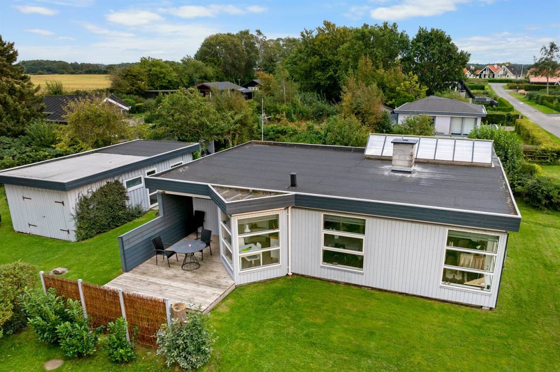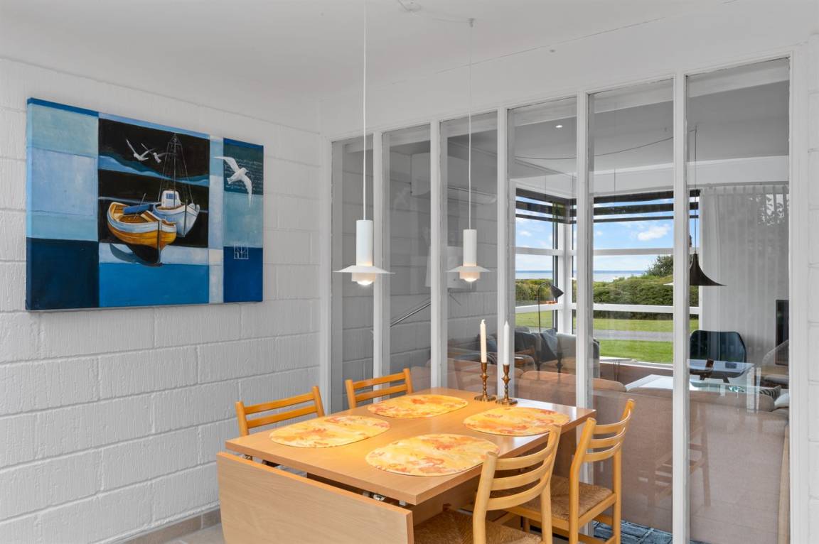 Mit Meeresblick sowohl vom Haus als auch vom Grundstück finden Sie dieses gemütlich eingerichtete Ferienhaus - in einem schönen und familienfreundlichen Feriengebiet. Übrigens: Die 2 Schlafplätze in Einzelbetten finden Sie in einem Gästehaus auf dem Grundstück.