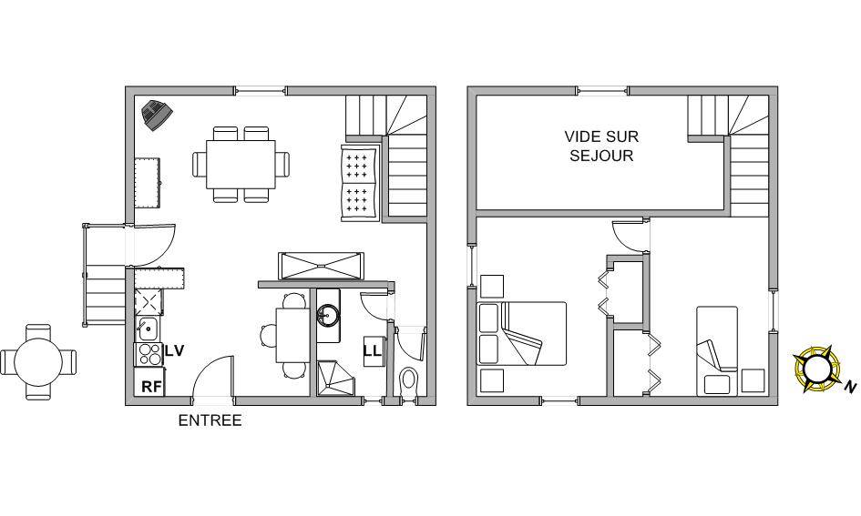 Erdgeschoss: Küche-Wohnzimmer mit klicken Sie klack Zweisitzer, Duschraum, wc. Obergeschoss: Zwischengeschoss mit einem Einzelbett (90cm), Ensuite-Schlafzimmer mit Doppelbett (140cm). Elektrische Heizung. Kein Handel an Brenon.