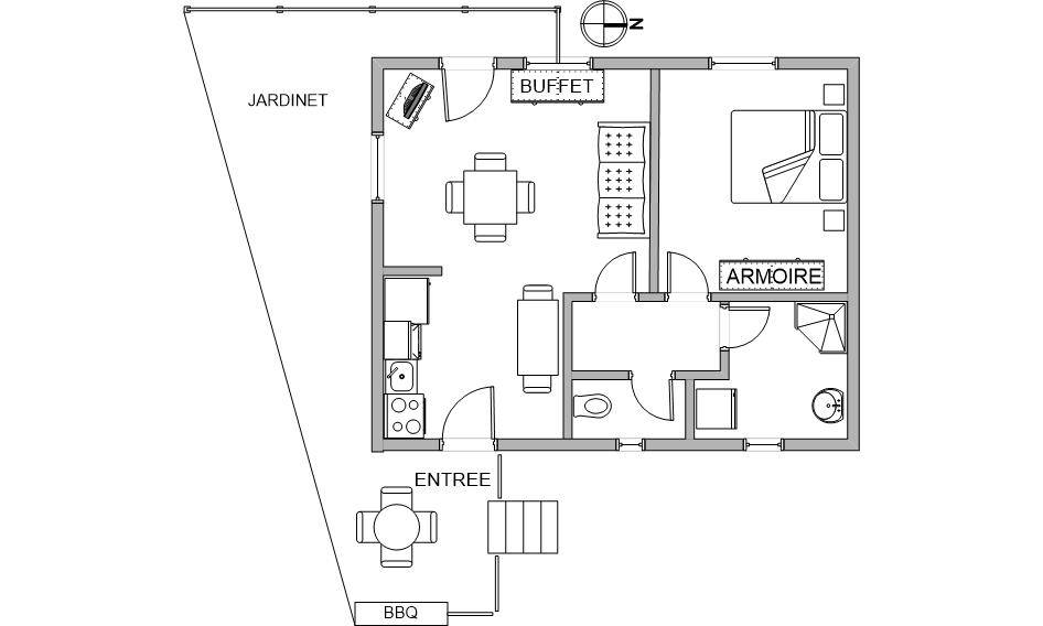 35 m² Gîte ∙ 1 Schlafzimmer ∙ 4 Gäste