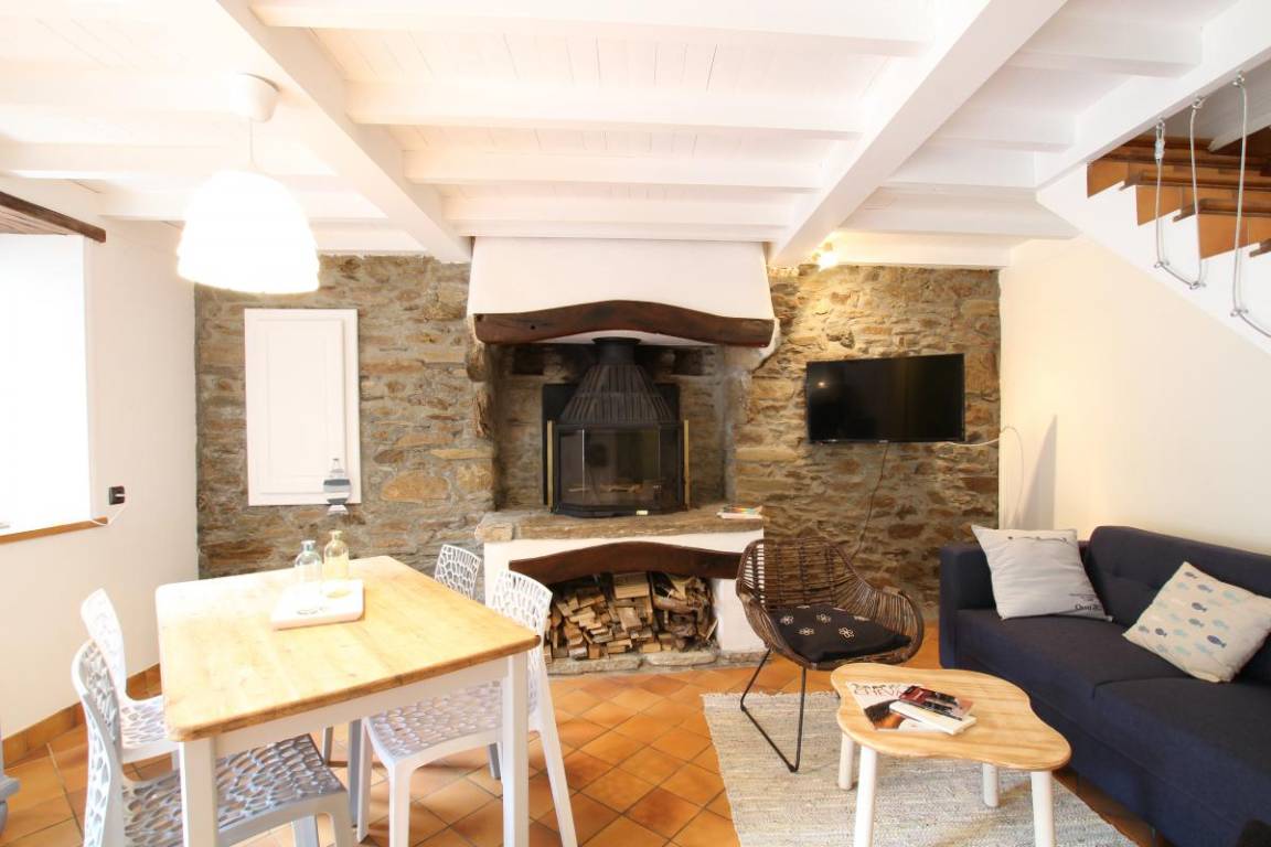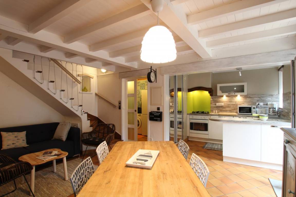 Freistehendes Haus. Wohnzimmer mit Kamineinsatz. Kochnische. Waschküche mit WC. Im 1. Obergeschoss: Schlafzimmer 1 (2 Einzelbetten). Duschbad mit WC. Ruheraum. Im 2. Obergeschoss: Schlafzimmer 2 auf einer Galerie (Doppelbett) mit kleinem angrenzenden Zimmer. Babyausstattung. Fernseher. WLAN. Waschmaschine. Geschirrspüler. Gaszentralheizung (Fußbodenheizung im Erdgeschoss). Alle Nebenkosten inklusive. Handtücher werden gestellt, Bettwäsche kann gemietet werden. Endreinigung gegen Aufpreis. Private, umzäunte Terrasse. Gartenmöbel. Grill. Parken an der Straße. Parkplatz 50 m entfernt.