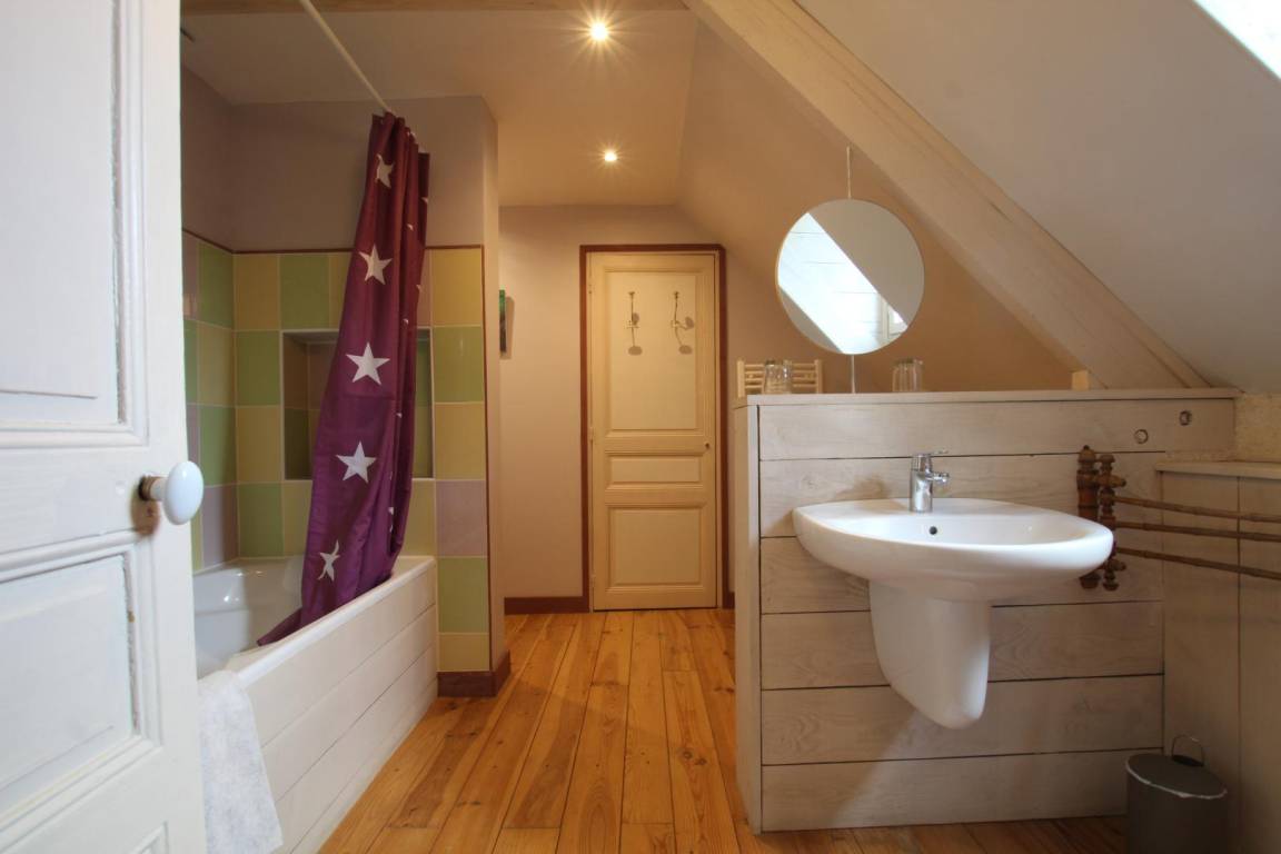 Haus, das an eine andere Gîte angrenzt. Wohnzimmer mit Holzofen (TV, WLAN). Zum Wohnzimmer offene Küche (Gasherd, Geschirrspüler, Kühlschrank mit Gefrierfach, Mikrowelle, Waschmaschine). Duschraum mit WC. Im 1. Stock: Schlafzimmer 1 (2 Einzelbetten 80x200 + 1 Alkoven 90x190), Schlafzimmer 2 (2 Einzelbetten 80x200 + 1 Bett 90x190), Badezimmer mit 2 Waschbecken und WC. Babyausstattung auf Anfrage. Zentralheizung (Holzhackschnitzel) inklusive. Alle Nebenkosten inklusive. Bettwäsche und Handtücher können gemietet werden. Reinigungsservice gegen Aufpreis. Privates, eingezäuntes Grundstück. Picknicktisch. Grill. Unterstand. Parkplatz. Kleiner Teich in der Nähe.