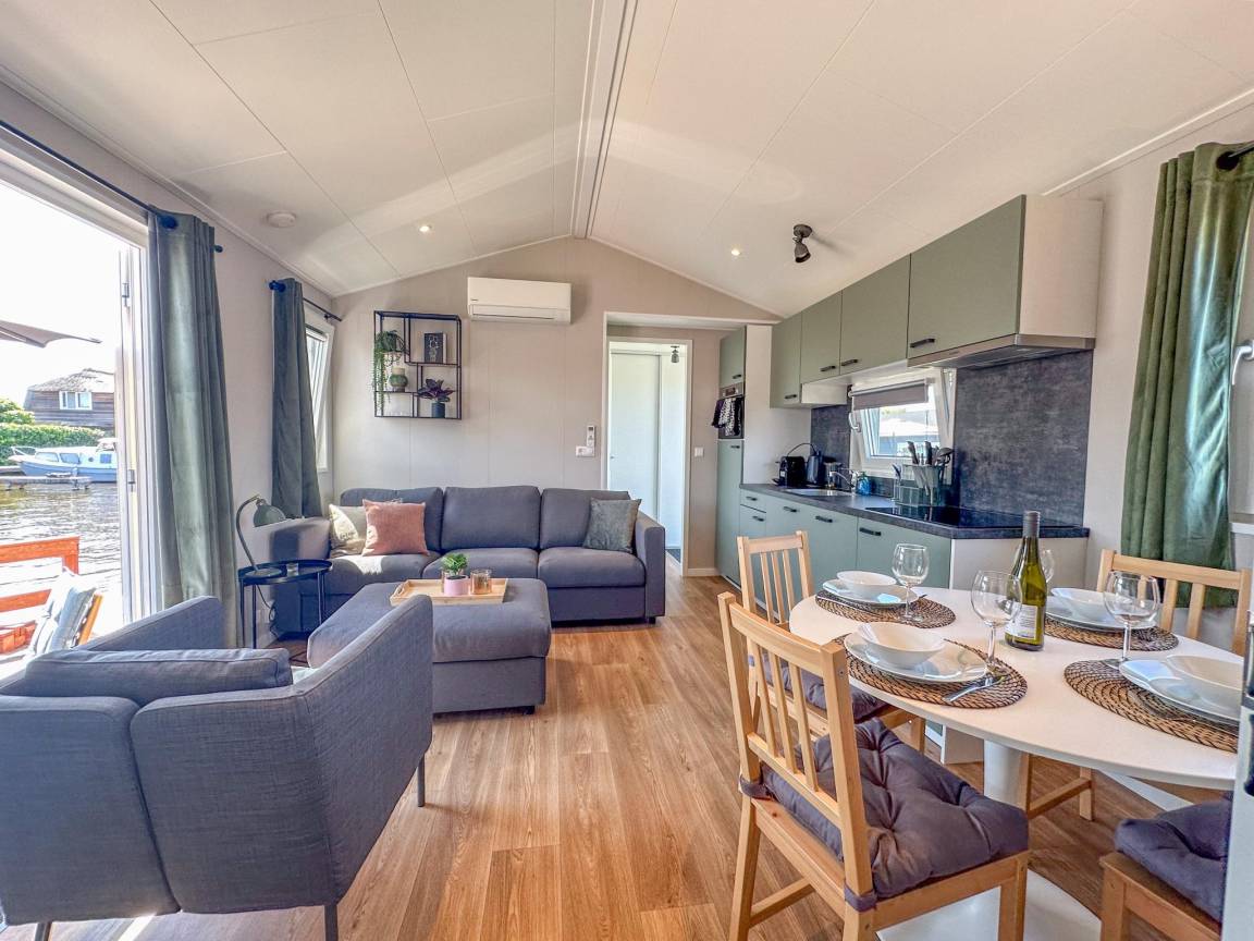 Hausbeschreibung : Auf den Loosdrechtse Plassen in der Nähe von Breukelen, im Zentrum der Niederlande, finden Sie dieses moderne Chalet direkt am Wasser. Im Sommer können Sie hier direkt ins Wasser springen und im Winter aufs Eis gehen. Mit einem schönen Wohnzimmer mit Entspannungsecke, Smart-TV und Klimaanlage, einem Esstisch, 2 Schlafzimmern mit Fullsize-Betten und einem Badezimmer haben Sie alles, was Sie brauchen. An der Rezeption können Sie ein Boot oder ein Fahrrad mieten, um die schöne Umgebung zu erkunden