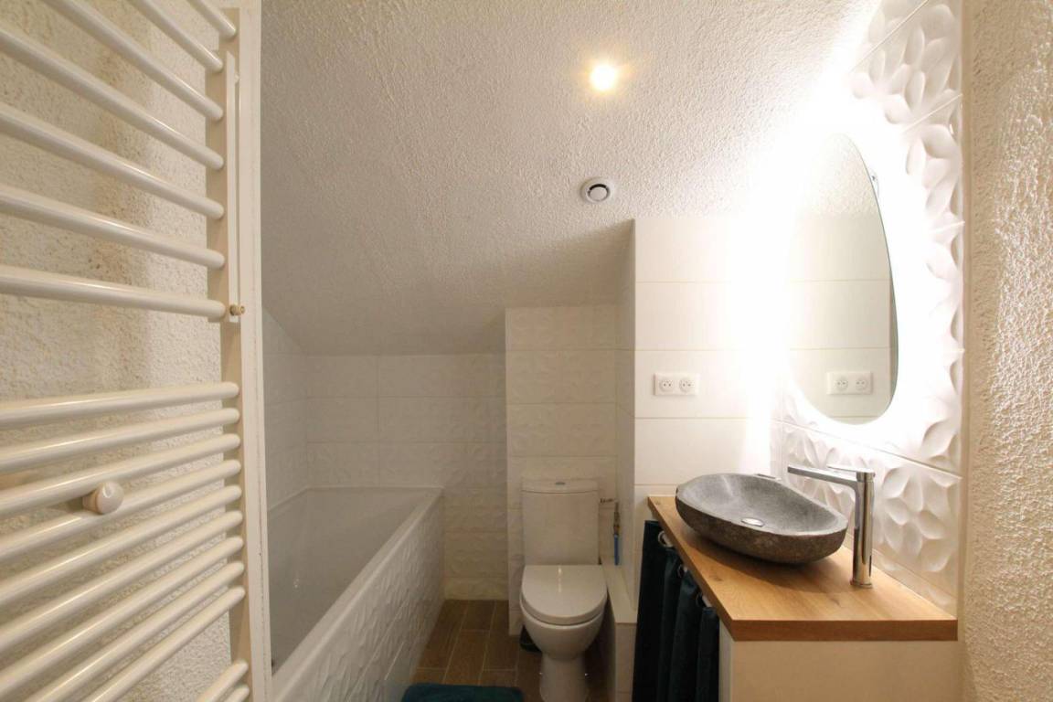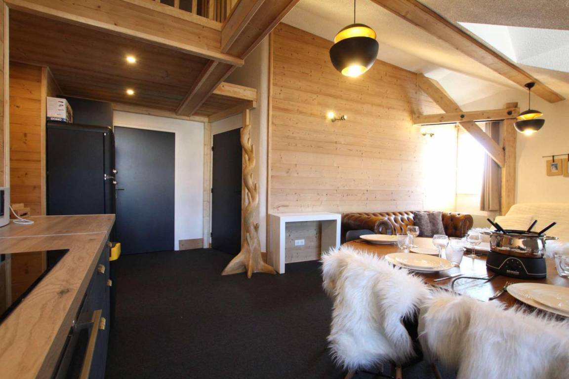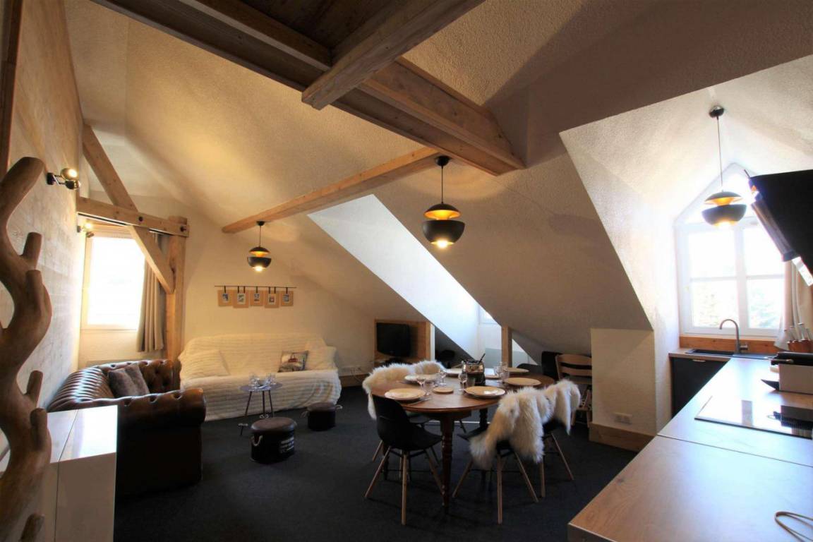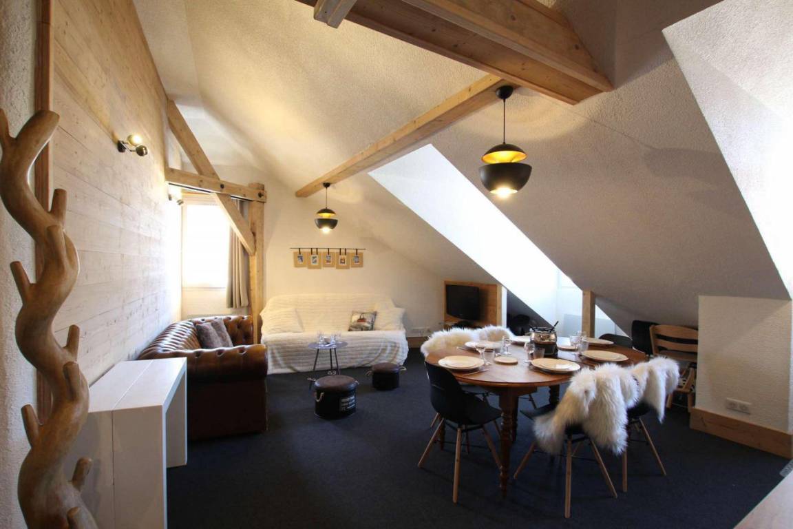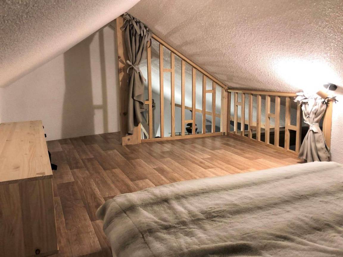 Fläche von ungefähr 100 m² enthält 24 m² unter 1,80 m. 3te Etage. Orientierung : Süd-Ost. Wohnzimmer. 2 Schlafzimmer mit Doppelbett (160). Schlafzimmer mit 2 Ausziehbetten, 4 Stockbetten. Mansardenzwischengeschoss (-1,80 m) mit Doppelbett (160). Kochnische mit Fonduegerät, Raclettegerät, Wasserkocher, Kaffeemaschine (capsules ), kleiner Backofen mit Mikrowellenfunktion, Multifunktions-Backofen, Toaster, Waschmaschine, Geschirrspülmaschine, 2 Induktionsherdplatten, Kühl-Gefrier-Kombination. Waschräume mit Dusche. separates WC. Badezimmer mit Badewanne, WC. Die oberen Betten sind nicht für Kinder unter 6 Jahren geeignet.