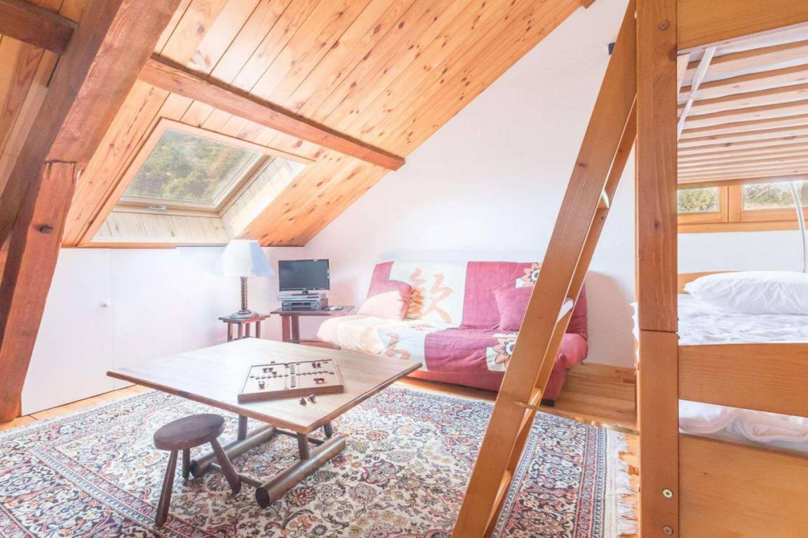 Fläche von ungefähr 120 m². 3te Etage. Orientierung : Ost, Süd-Ost, Süd. Blick berg. Wohnzimmer mit einfache Klappschlafcouch. Schlafzimmer mit Ausziehbett. Zwischengeschoss mit Klappschlafcouch, 2 Stockbetten. Schlafzimmer mit Doppelbett. Schlafzimmer mit 2 Einzelbetten. Küche mit Kaffeemaschine, Backofen, kleiner Backofen mit Mikrowellenfunktion, Geschirrspülmaschine, Herdplatten, Kühlschrank. Waschräume mit Waschmaschine. Waschräume mit Badewanne, Dusche. Balkon. Die oberen Betten sind nicht für Kinder unter 6 Jahren geeignet.