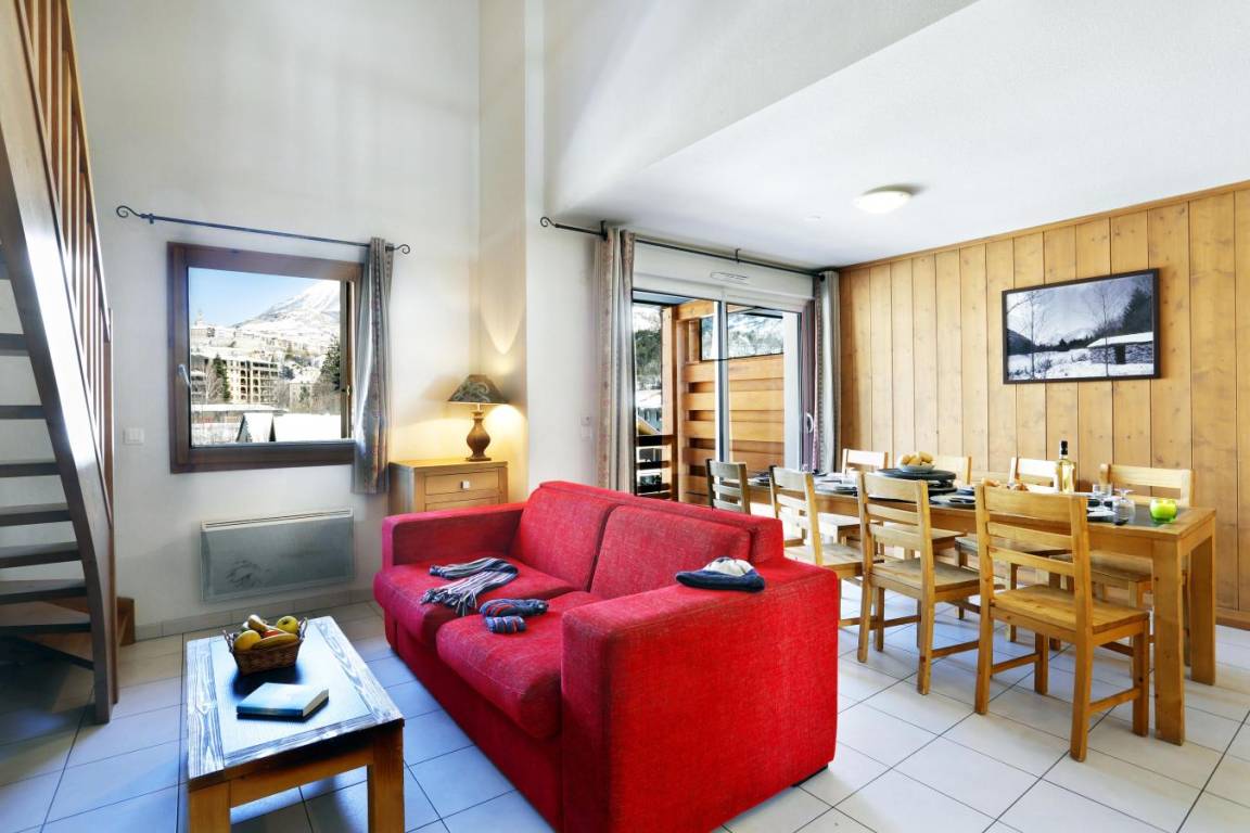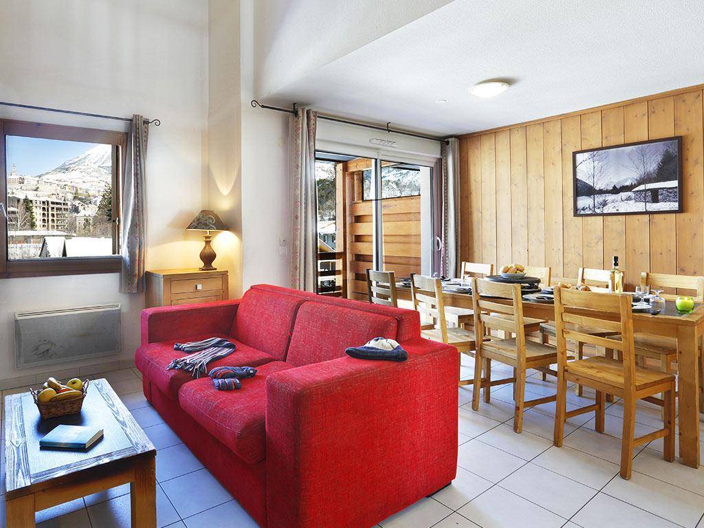 Die Residenz Aigle Bleu*** wurde im Einklang mit der Bergtradition erbaut. „L'Aigle Bleu" liegt etwa 300 m vom Zentrum und den Geschäften entfernt. Die sorgfältig eingerichteten Apartments bieten allen nötigen Komfort für einen angenehmen Aufenthalt. Sie werden den kostenlosen Zugang zu den Whirlpools, der Sauna, dem Hammam und der Lounge mit Kamin und Billard zu schätzen wissen. Fläche von ungefähr 44 m². Wohnzimmer mit Klappschlafcouch (140), Essbereich. Schlafzimmer mit 2 Einzelbetten (80) oder 2 Stockbetten (80). Schlafzimmer mit Doppelbett (160). Kochnische mit Kaffeemaschine, Toaster, Geschirrspülmaschine, Mikrowellenherd, Glaskeramikkochfelder, Kühlschrank. Badezimmer mit Badewanne. separates WC. Balkon ODER Terrasse. Die oberen Betten sind nicht für Kinder unter 6 Jahren geeignet.