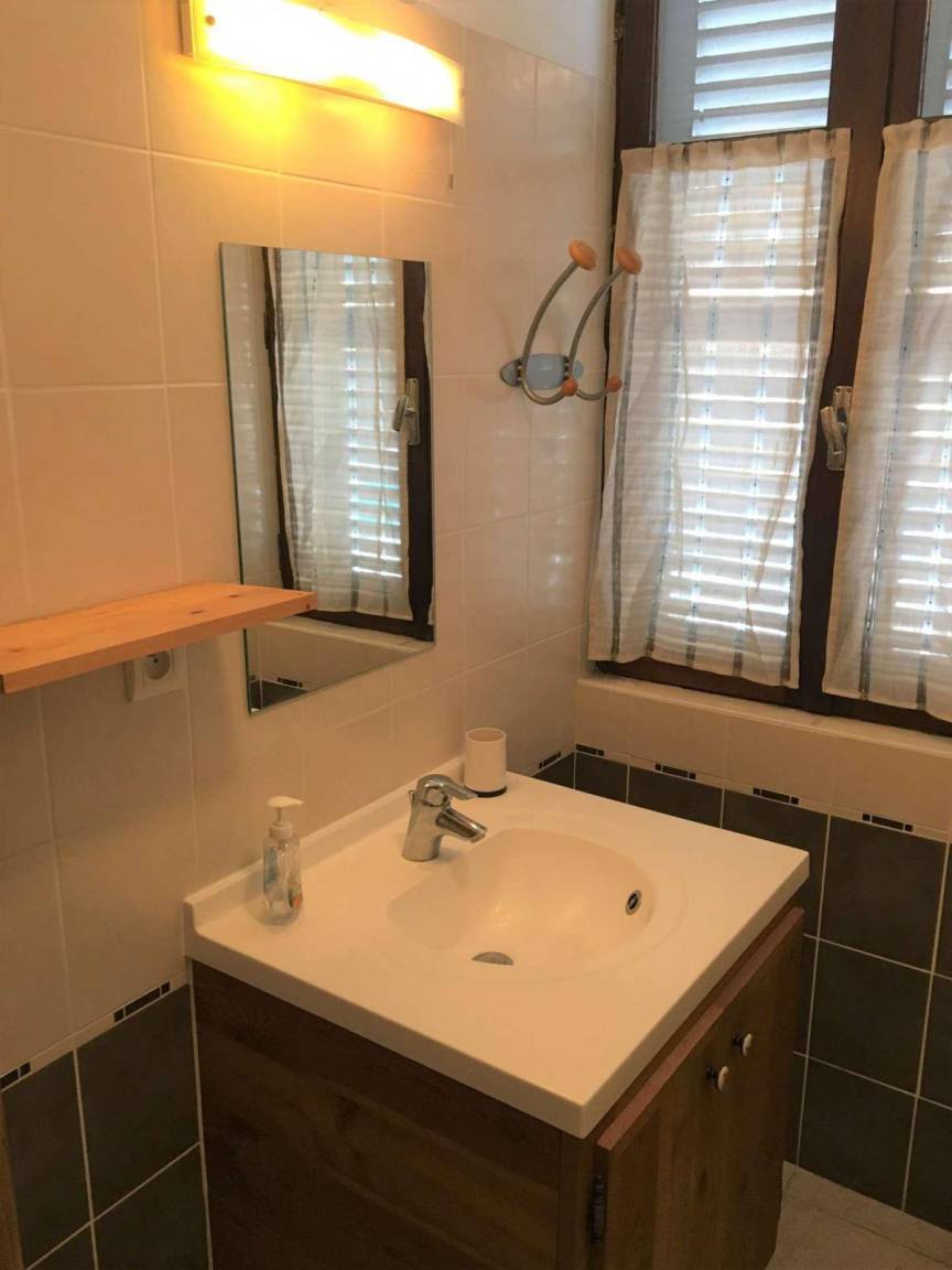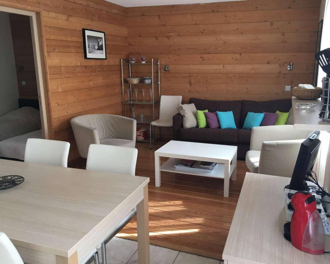 Fläche von ungefähr 53 m². 1te Etage. Orientierung : Ost. Blick berg. Wohnzimmer mit Klappschlafcouch (2 places). Schlafzimmer mit Doppelbett (140*190). Schlafzimmer mit 2 Ausziehbetten (80*190), Doppel Hochbett (160*190). Kochnische mit Wasserkocher, Kaffeemaschine (Tassimo), kleiner Backofen mit Mikrowellenfunktion, Toaster, Geschirrspülmaschine, 4 Induktionsherdplatten, Kühlschrank. Waschräume mit Dusche, Waschbecken. separates WC. Balkon. Staubsauger, Bügeleisen, Waschmaschine.