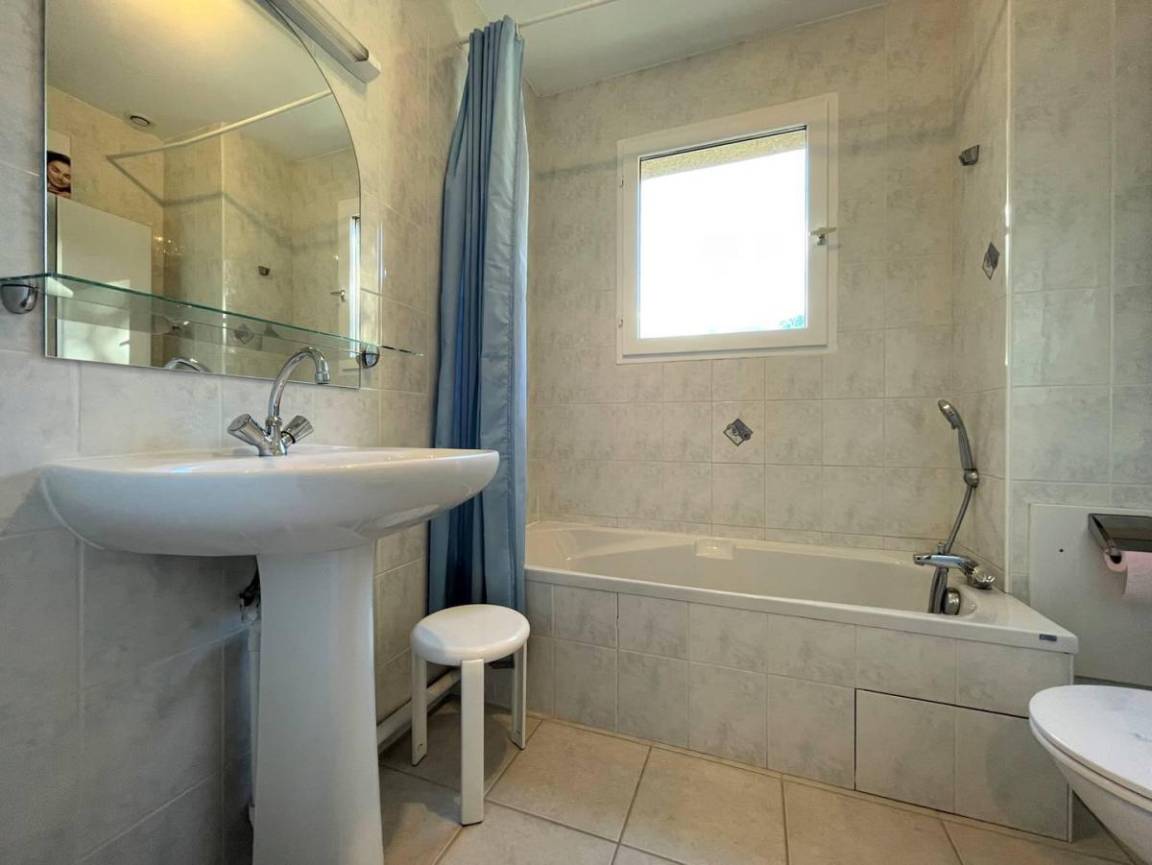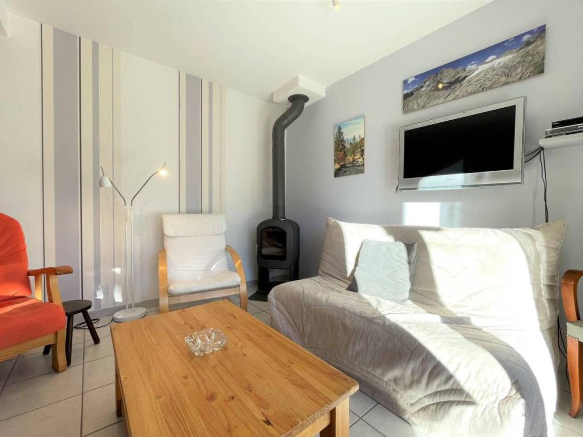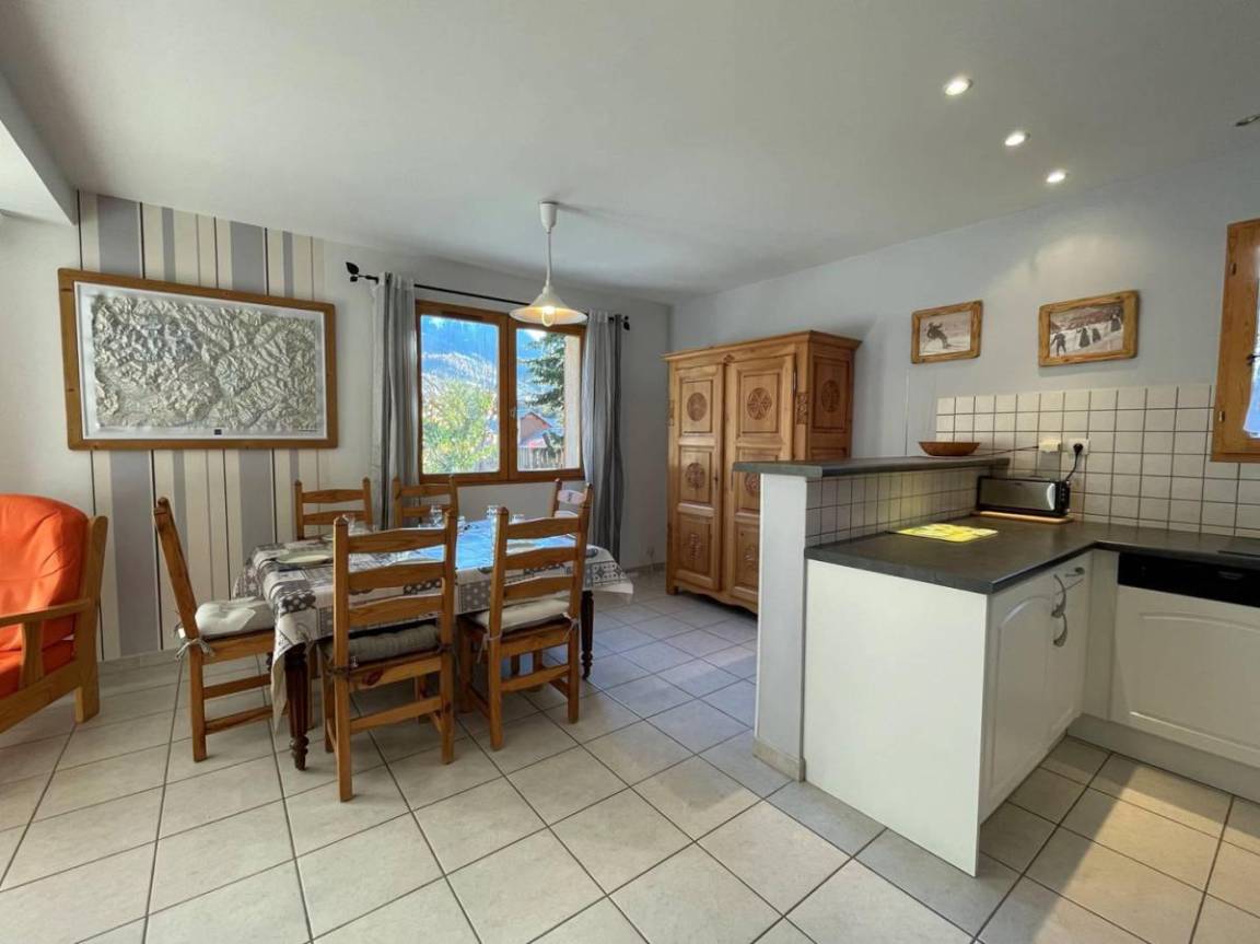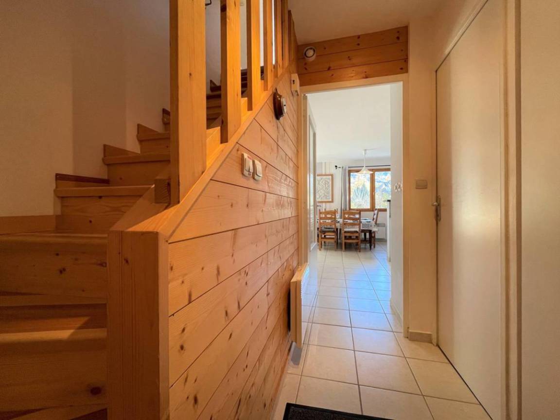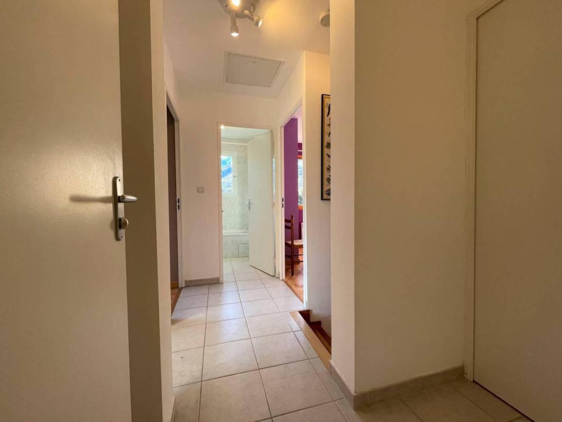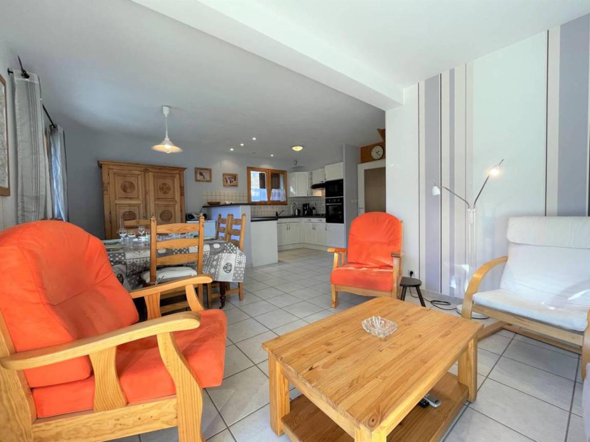 Fläche von ungefähr 88 m². 1te Etage. Orientierung : Süd. Niveau 0 : Diele. Wohnzimmer. Kochnische mit Fonduegerät, Raclettegerät, Kaffeemaschine (Nespresso), Backofen, kleiner Backofen mit Mikrowellenfunktion, Toaster, Geschirrspülmaschine, 2 Gasherdplatten, Kühl-Gefrier-Kombination. separates WC. Waschküche mit Staubsauger, Bügeleisen, Waschmaschine. Terrasse-Garden mit Liege. Niveau 1 : 3 Schlafzimmer mit Doppelbett (140*190). Waschräume mit WC. Badezimmer mit WC.