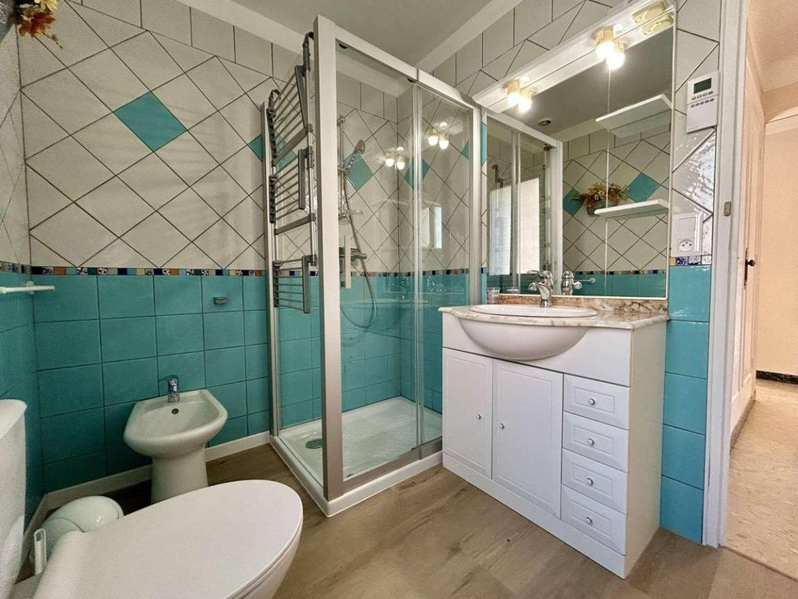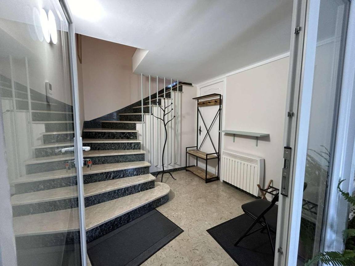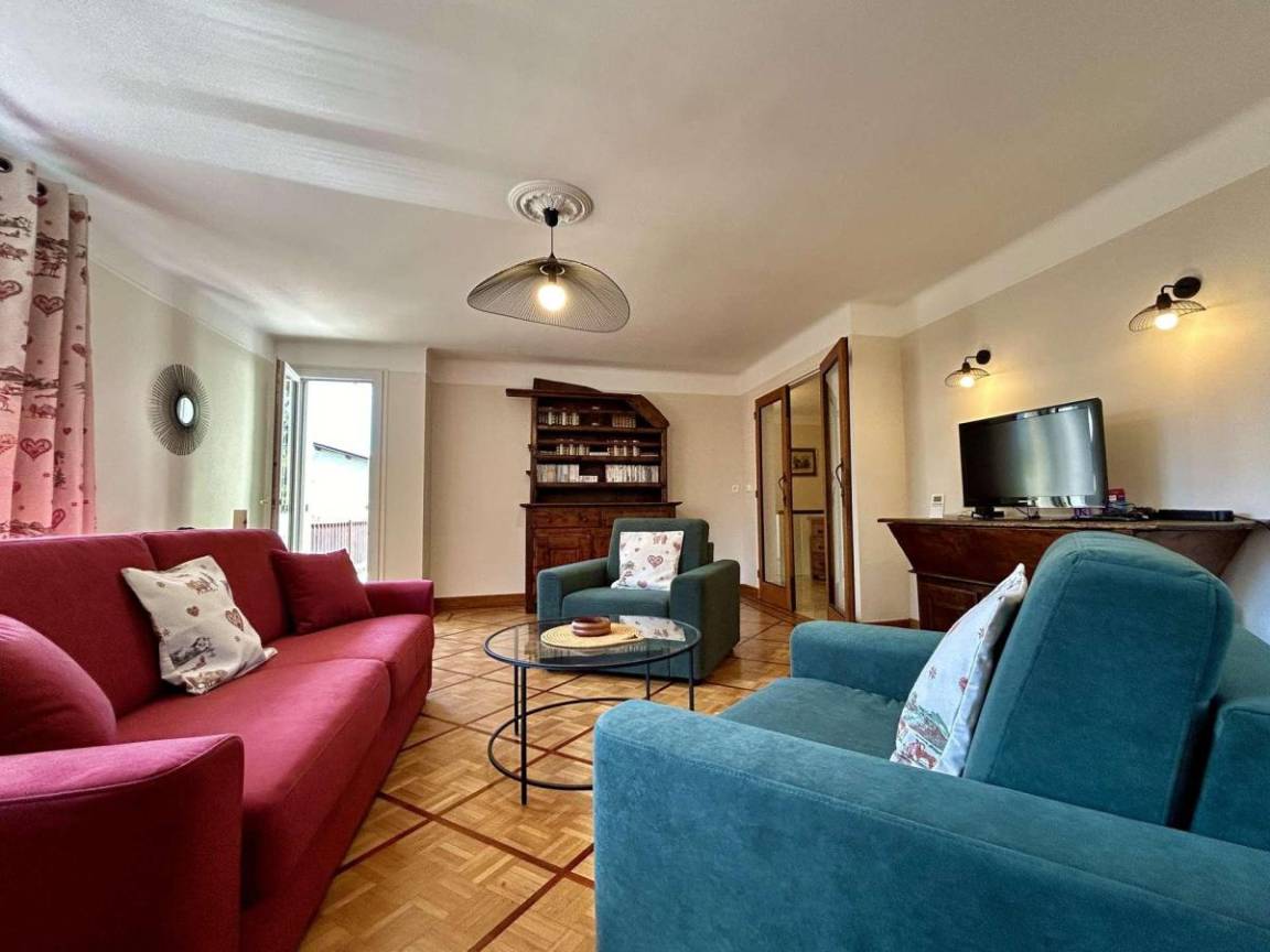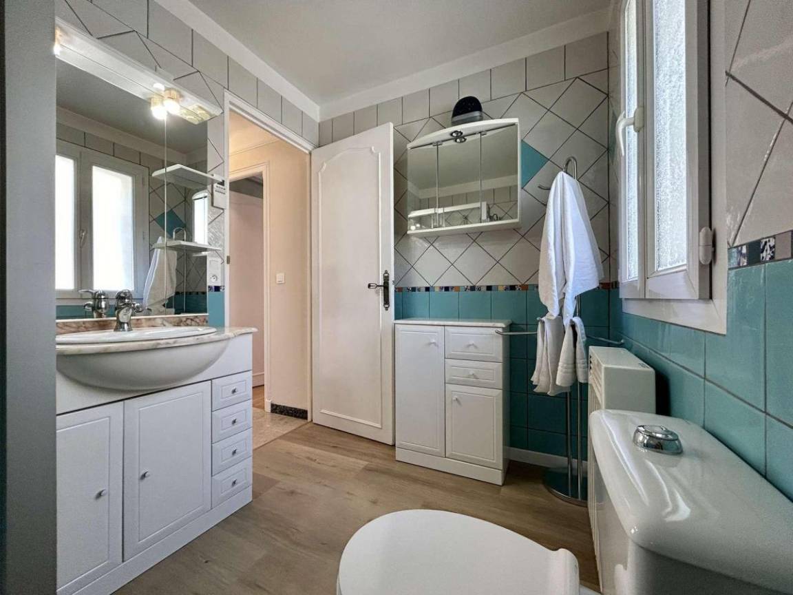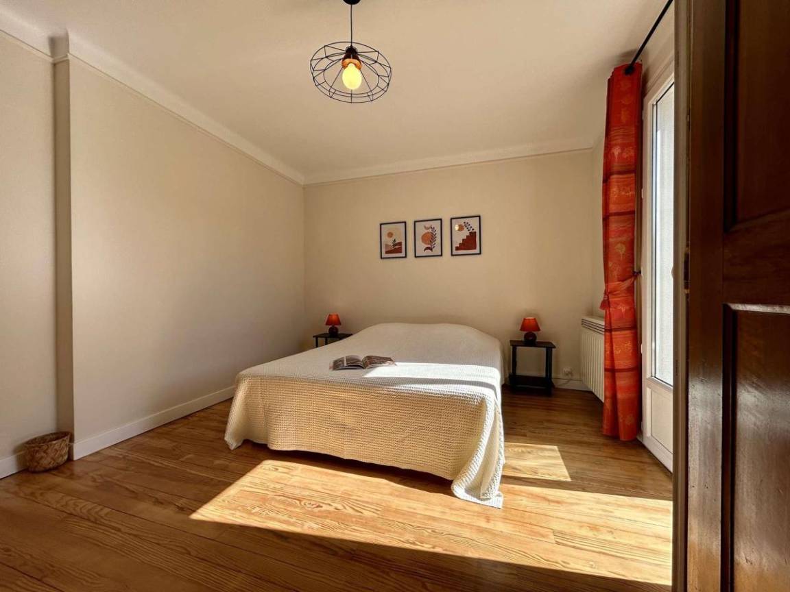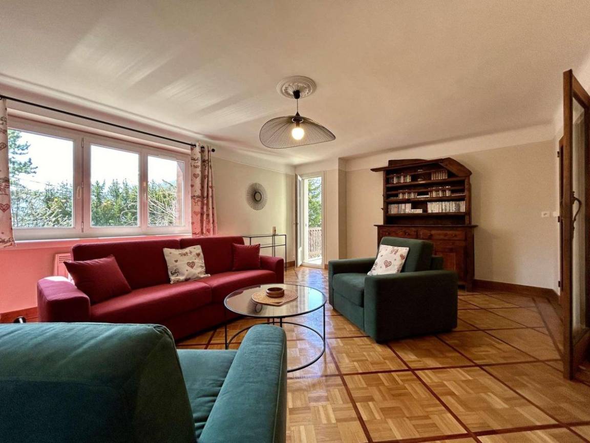 Fläche von ungefähr 125 m². 1te Etage. Orientierung : Süd. Wohnzimmer. 2 Schlafzimmer mit 2 Einzelbetten (90x200). Schlafzimmer mit Doppelbett (160x190). Küche mit Wasserkocher, Kaffeemaschine (filtres), Backofen, kleiner Backofen mit Mikrowellenfunktion, Toaster, Geschirrspülmaschine, Induktionsherdplatten, Kühl-Gefrier-Kombination. Waschküche mit Staubsauger, Waschmaschine. Waschräume mit Dusche, WC. Waschräume mit Dusche. separates WC. Balkon.