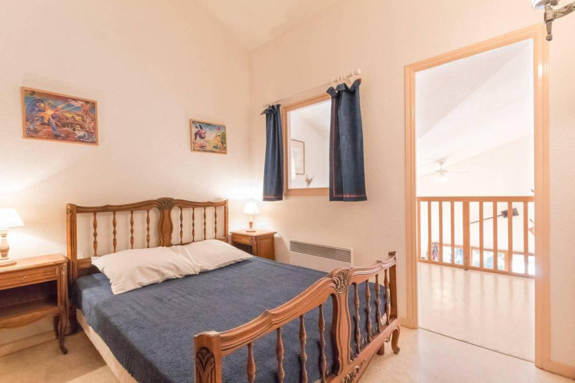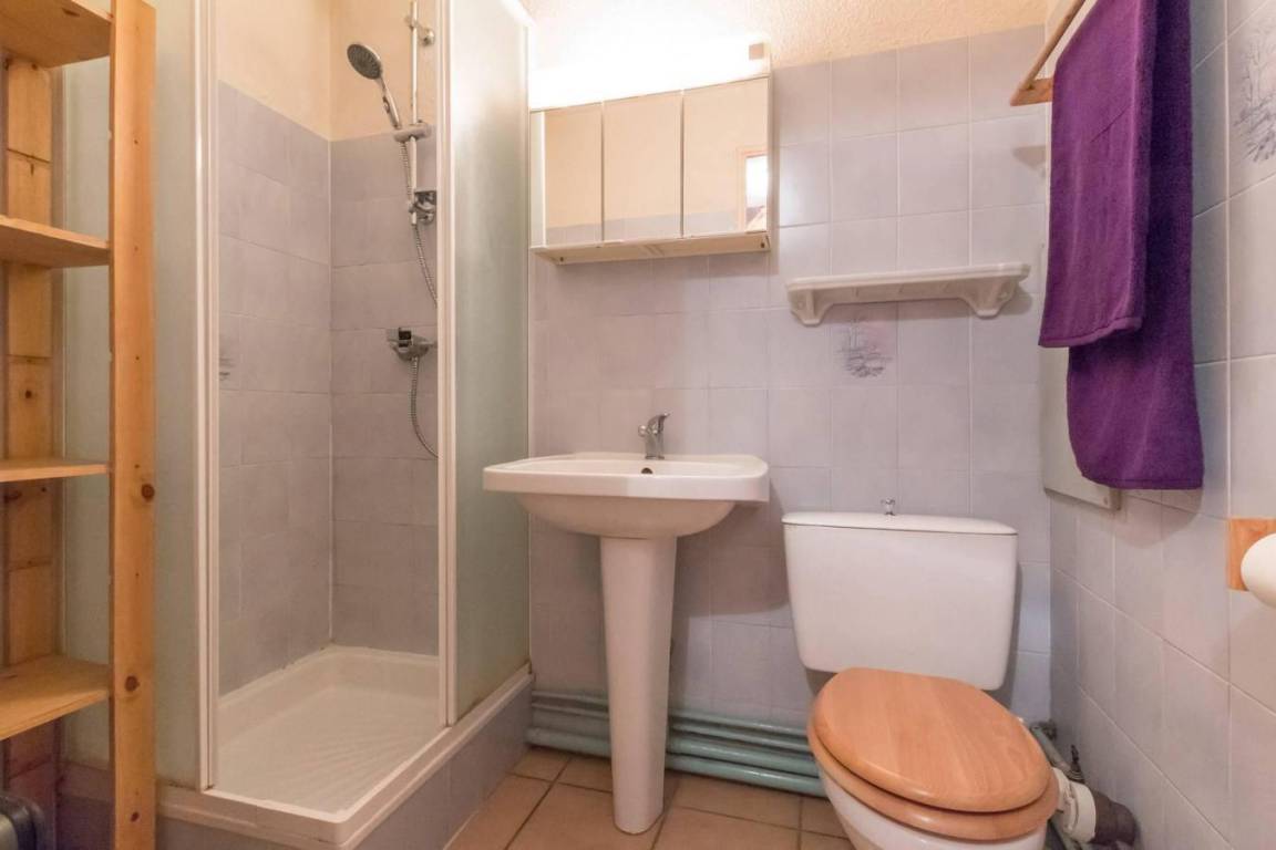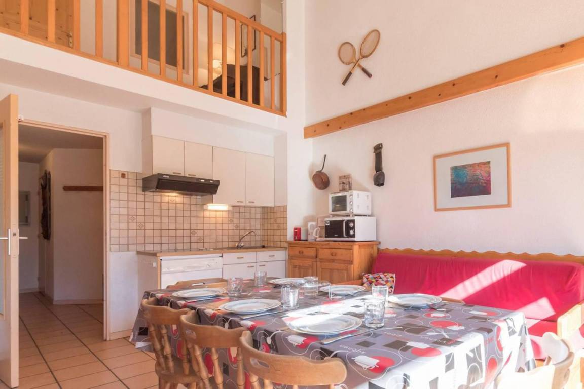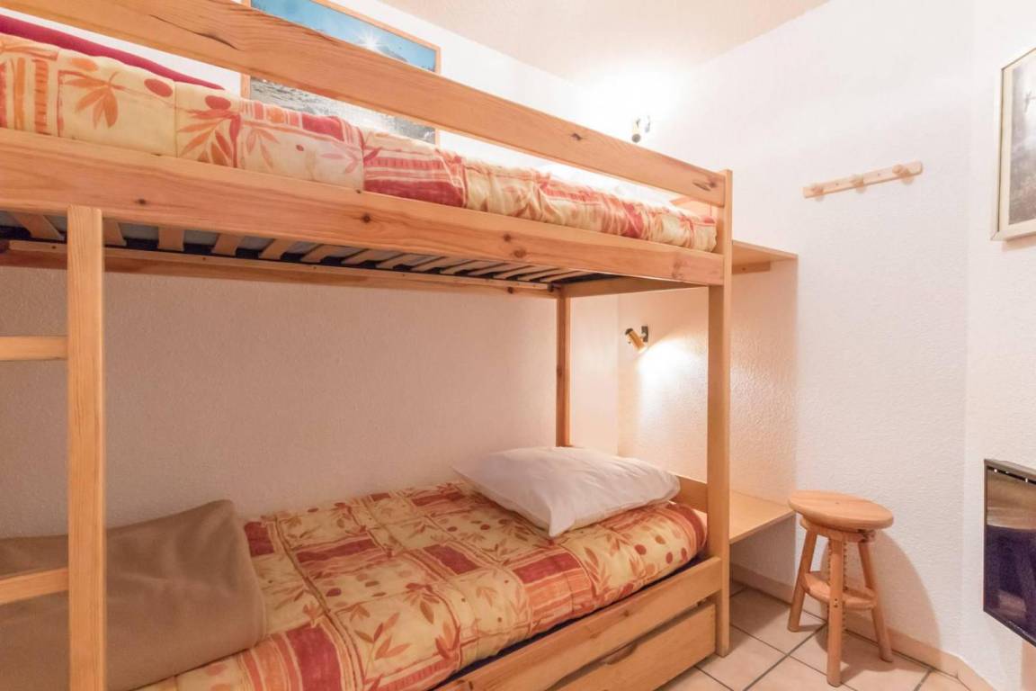 Fläche von ungefähr 47 m². Einige als Maisonette. 6te Etage. Orientierung : Ost, Süd. Blick berg. Niveau 0 : Wohnzimmer mit Ausziehschlafcouch für 2 Personen. kleines zimmer mit 2 Stockbetten. Kochnische mit Wasserkocher, Kaffeemaschine (filtres), Backofen, kleiner Backofen mit Mikrowellenfunktion, Geschirrspülmaschine, 2 Glaskeramikkochfelder, Kühlschrank. Waschräume mit Dusche, WC. Balkon. Niveau 1 : Zwischengeschoss mit Doppelbett (140). Die oberen Betten sind nicht für Kinder unter 6 Jahren geeignet.
