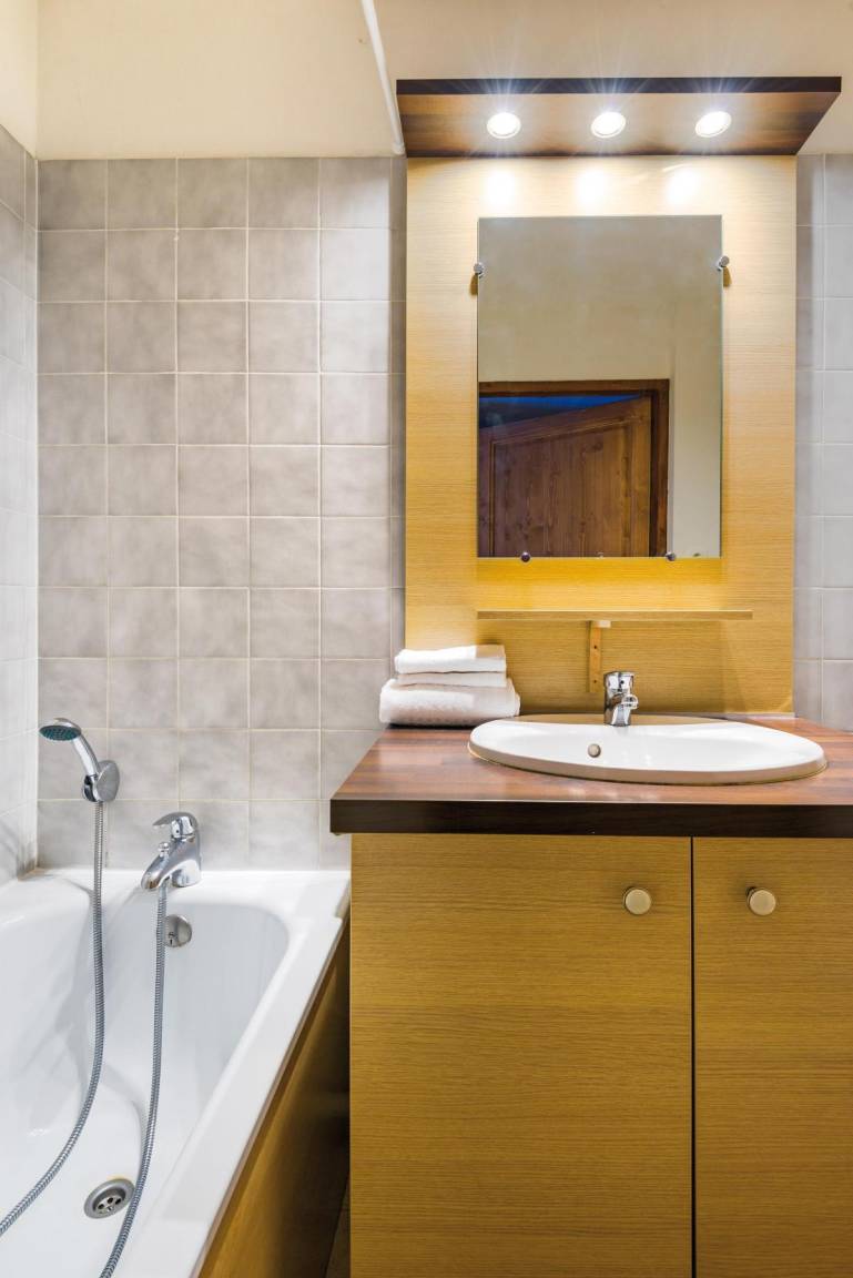 Fläche von ungefähr 60 m². Wohnzimmer mit Ausziehschlafcouch für 2 Personen. Schlafzimmer mit Doppelbett. offener Schlafbereich mit 2 Stockbetten. offener Schlafbereich mit 2 Stockbetten. Kochnische mit Kaffeemaschine, Mikrowellengrill, Geschirrspülmaschine, Glaskeramikkochfelder, Kühlschrank. Badezimmer mit Badewanne oder Dusche. Waschräume mit Dusche. separates WC. Balkon. Die oberen Betten sind nicht für Kinder unter 6 Jahren geeignet.