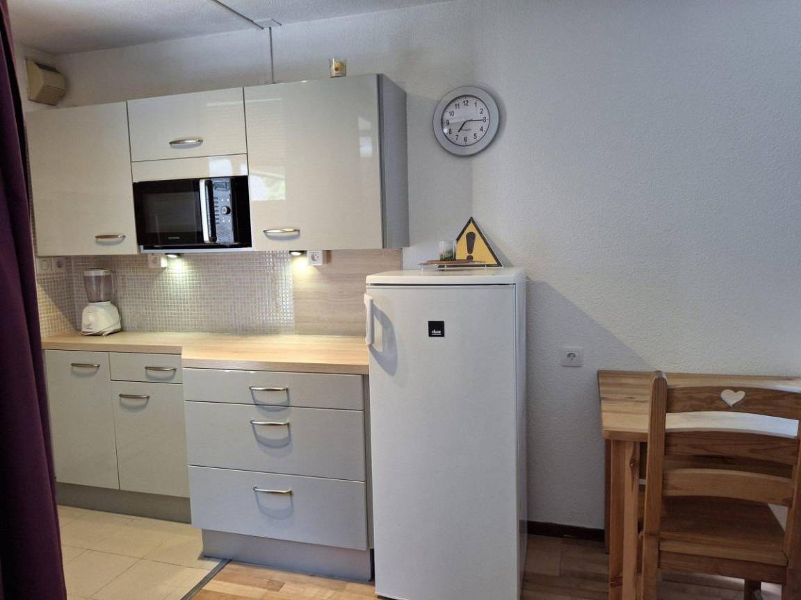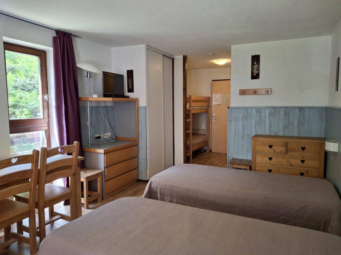 Die Residenz Cybèle mit Aufzug befindet sich in ruhiger Lage, nur 400 Meter vom Zentrum von Brides-les-Bains und 500 Meter von der Gondelbahn Olympe (mit Verbindung nach Méribel), der Therme und Geschäften entfernt (kostenloser Shuttle-Service verfügbar). So können Sie das Skigebiet Les Trois Vallées genießen und gleichzeitig die freundliche Atmosphäre eines savoyischen Dorfes erleben. Die Therme und das Wellnesscenter sind von März bis Oktober geöffnet. Die Residenz Cybèle bietet renovierte Apartments mit Balkon. Fläche von ungefähr 28 m². 1te Etage. Orientierung : Ost. Wohnzimmer mit 2 Einzelbetten. offener Schlafbereich mit 2 Stockbetten. Kochnische mit Geschirrspülmaschine, Mikrowellenherd, Glaskeramikkochfelder, Kühlschrank. Waschräume mit Dusche, WC. Balkon. Die oberen Betten sind nicht für Kinder unter 6 Jahren geeignet.
