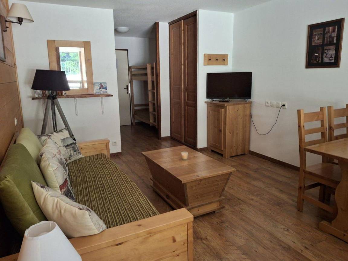 Die Résidence Cybèle liegt am Eingang des Skigebiets Brides-les-Bains in ruhiger Lage, etwa 500 Meter vom lebhaften Ortskern und den Thermalbädern entfernt. Im Winter bringt Sie ein kostenloser Shuttlebus direkt von der Unterkunft zu den Gondeln. Fläche von ungefähr 28 m². 1te Etage. Orientierung : West. Blick begrenzt. Wohnzimmer mit Klappschlafcouch. offener Schlafbereich mit 2 Stockbetten. Kochnische mit Wasserkocher, Kaffeemaschine, Toaster, Dunstabzugshaube, Geschirrspülmaschine, Mikrowellenherd, Glaskeramikkochfelder, Kühlschrank. Badezimmer mit Badewanne, WC. Balkon. Die oberen Betten sind nicht für Kinder unter 6 Jahren geeignet.