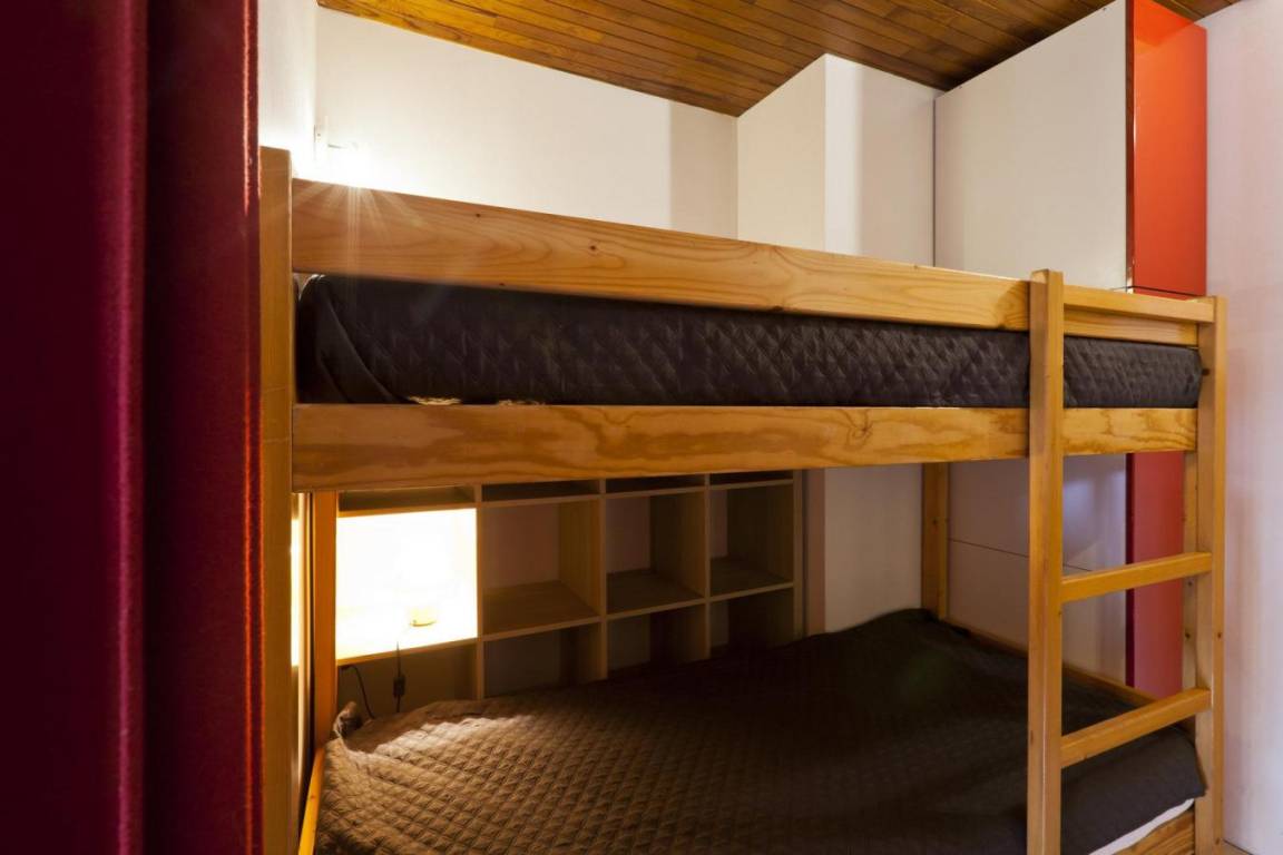 Fläche von ungefähr 27 m². 6te Etage. Orientierung : Ost. Blick station (Brides Les Bains ). Wohnzimmer mit Ausziehbetten. offener Schlafbereich mit 2 Stockbetten. Kochnische mit Wasserkocher, Kaffeemaschine, Toaster, Geschirrspülmaschine, Mikrowellenherd, elektronische Herdplatten, Kühl-Gefrier-Kombination. Badezimmer mit Badewanne, Waschmaschine, WC. Balkon. Die oberen Betten sind nicht für Kinder unter 6 Jahren geeignet.
