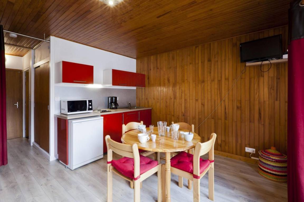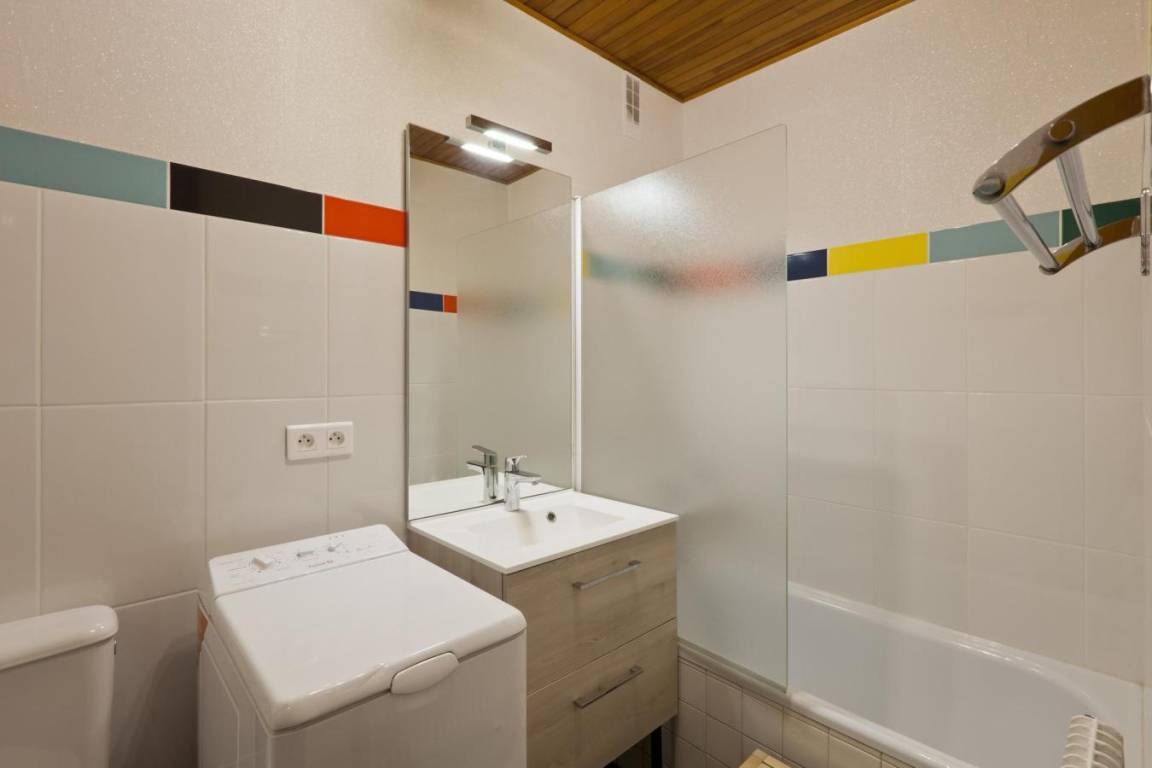 Fläche von ungefähr 27 m². 6te Etage. Orientierung : Ost. Blick station (Brides Les Bains ). Wohnzimmer mit Ausziehbetten. offener Schlafbereich mit 2 Stockbetten. Kochnische mit Wasserkocher, Kaffeemaschine, Toaster, Geschirrspülmaschine, Mikrowellenherd, elektronische Herdplatten, Kühl-Gefrier-Kombination. Badezimmer mit Badewanne, Waschmaschine, WC. Balkon. Die oberen Betten sind nicht für Kinder unter 6 Jahren geeignet.