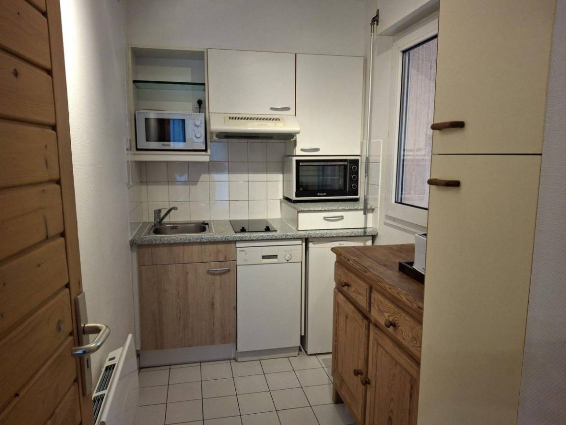 Die Residence Tarentaise befindet sich im Dorf Brides Les Bains, einem kleinen Dorf auf 600 m Höhe, das über die Seilbahn Olympe (Fahrtzeit 30 Minuten) mit Méribel und dem Skigebiet Trois Vallées verbunden ist. Die Seilbahn ist nur 200 m von der Residence entfernt und das Dorfzentrum mit seinen Geschäften und anderen Annehmlichkeiten liegt 100 m entfernt. Fläche von ungefähr 30 m². 2te Etage. Orientierung : Nord-Ost. Wohnzimmer mit einfache Klappschlafcouch, 2 Einzelbetten. Kochnische mit Backofen, Geschirrspülmaschine, Mikrowellenherd, 2 Glaskeramikkochfelder, Kühlschrank. Badezimmer mit WC. Balkon.
