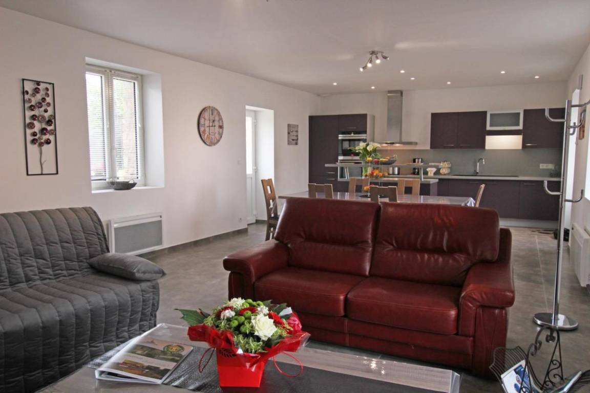 „Gîte très agréable, belle pièce de vie, petit jardin agréable sur l arrière de la maison. Accueil très sympathique pour rayonner dans cette belle région. Nous avons été accueillis avec un panier de bons légumes "maison"!“
