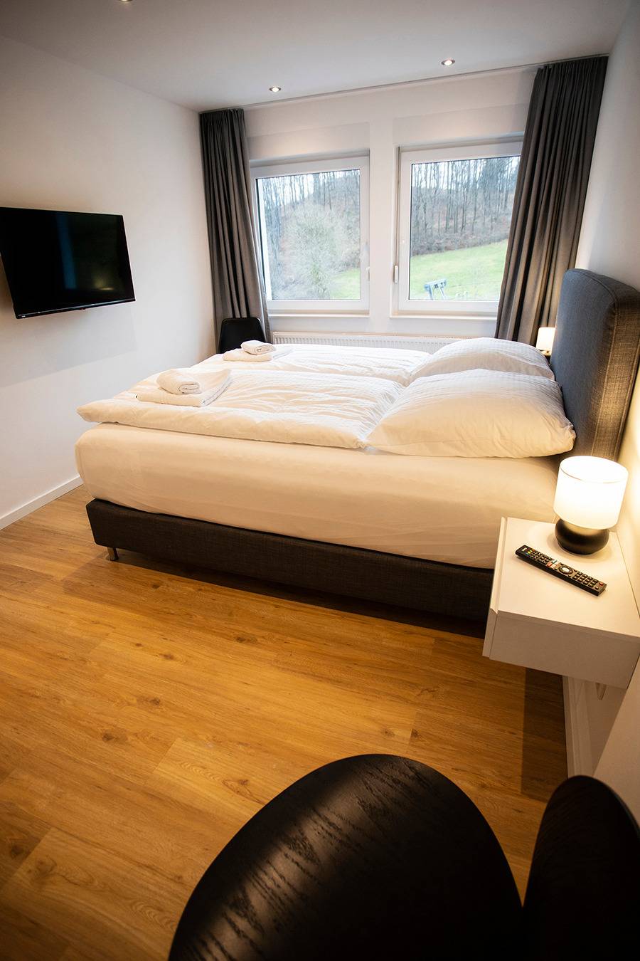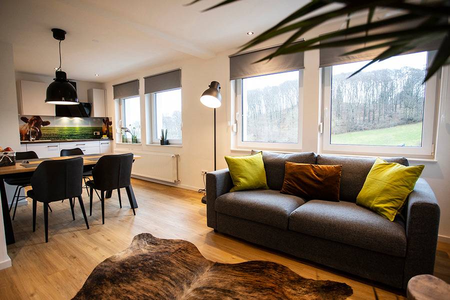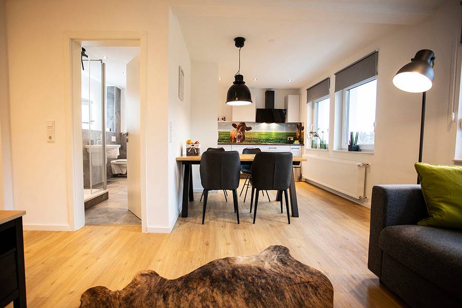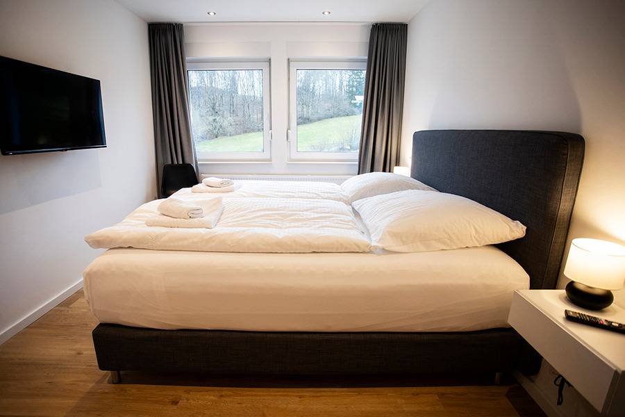 Genießt die erholsame Ruhe und den traumhaften Ausblick auf Brilons höchstem Berg, den Poppenberg. Trotz der Alleinlage erreicht Ihr den Briloner Marktplatz mit historischen Gebäuden in nur ca. 10min zu Fuß. Skilift und Rodelhang liegen direkt vor der Haustür. In unmittelbarer Nähe befinden sich zudem die Möhnequelle (5min zu Fuß), ein Golfplatz sowie ein Trailground (3min mit dem Auto). Auch eines der größten Freibäder NRWs mit seinen ca. 6.500 qm Wasserfläche liegt in unmittelbarer Nähe (ca. 5min mit dem Auto). Alle Apartments sind völlig neu saniert (Erstbezug: Oktober 2021) und bieten Euch allen erdenklichen Komfort, wie z.B. Flachbild-Sat-TV, eine komplett ausgestattete Küche, kostenfreies WLAN sowie ein modernes Bad. An den Wochenenden habt ihr die Möglichkeit, euch frische Brötchen liefern zu lassen. Im frei zugänglichen Garten werdet Ihr Euch und Eure Kinder sich wohlfühlen. Relaxen könnt Ihr in unserem Spa-Bereich mit finnischer Sauna, großem Ruhebereich und verschiedenen Wellnessduschen. Winterberg liegt 32 km vom Q-Stall entfernt und Willingen erreicht ihr in 14 km. Wir freuen uns auf Deine Buchung!