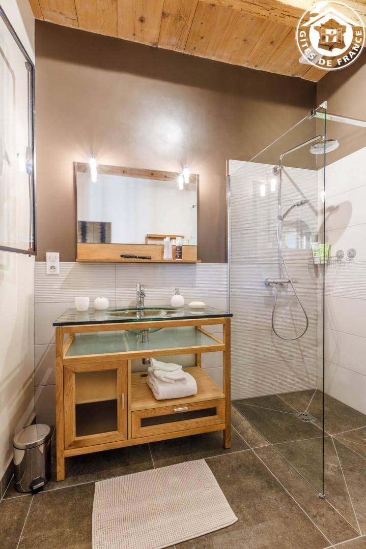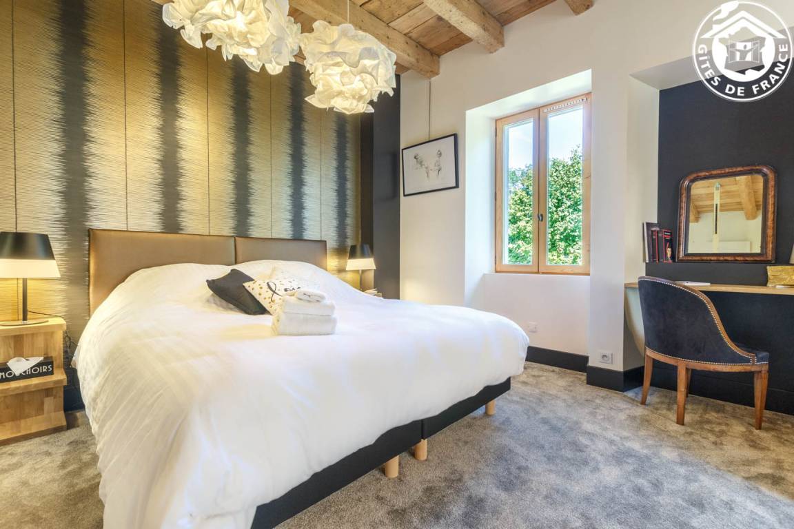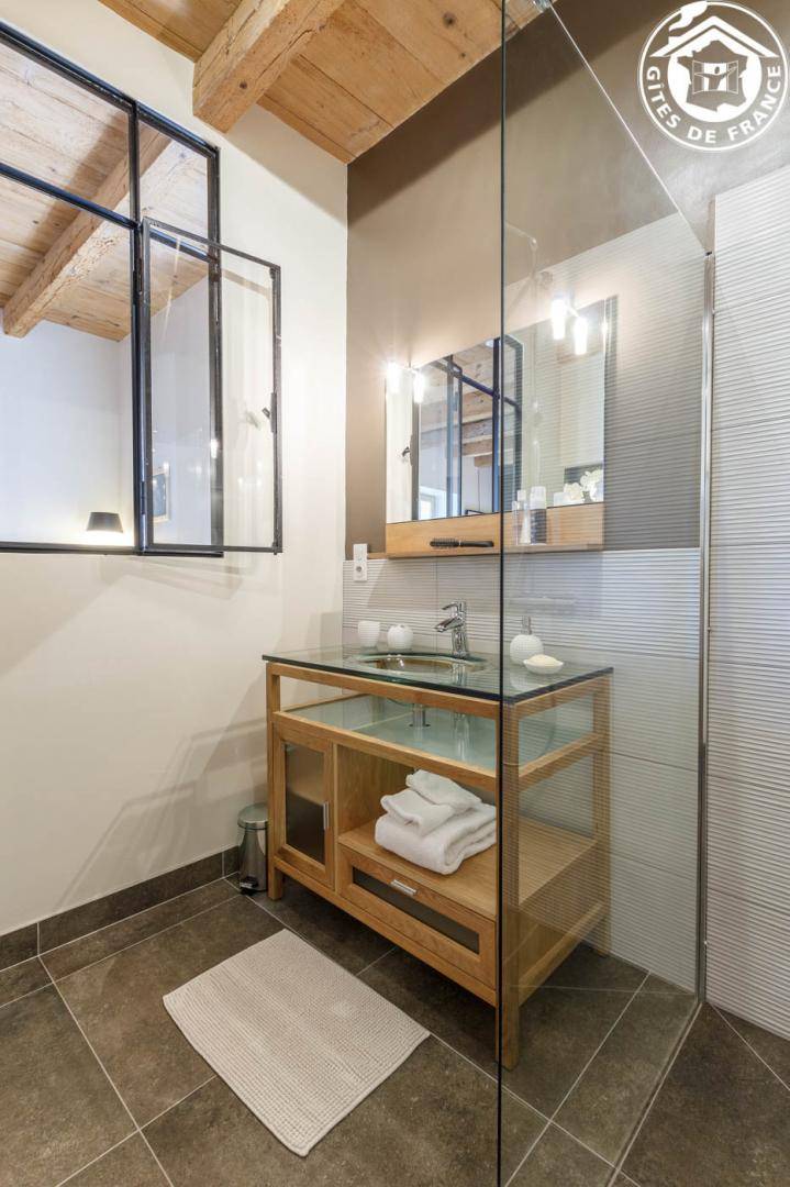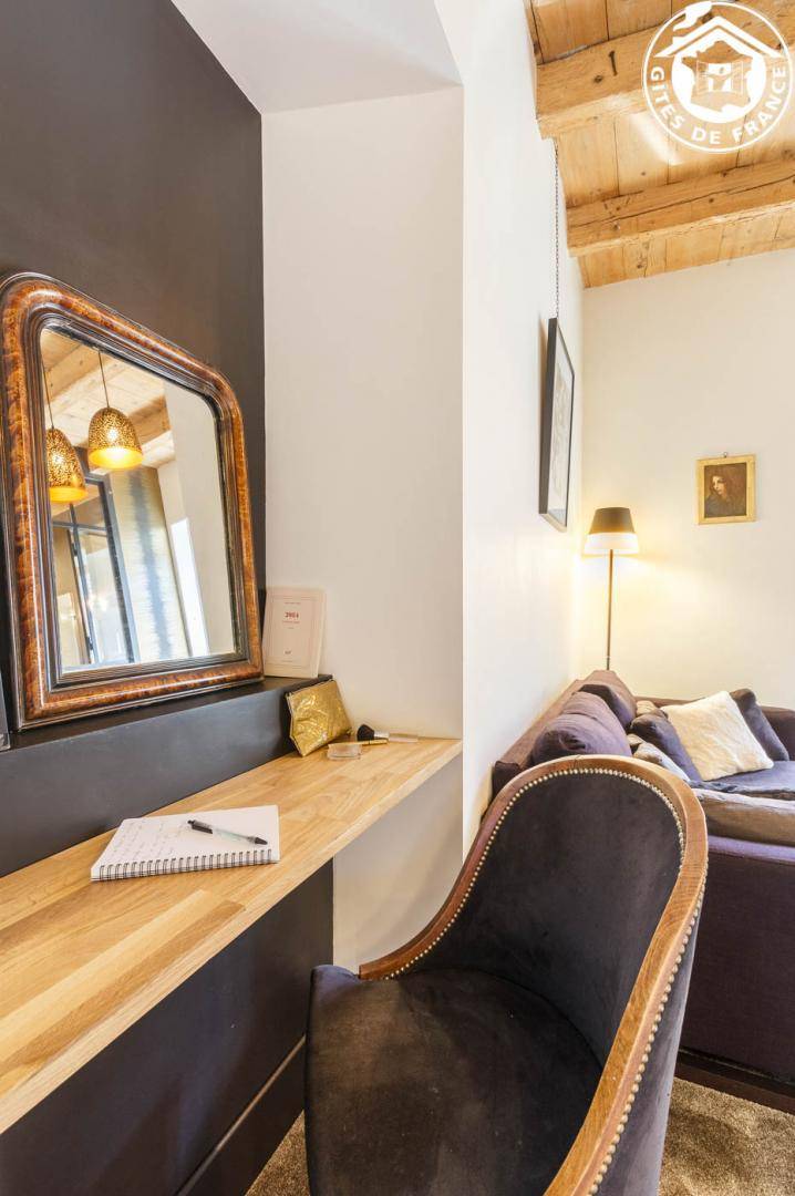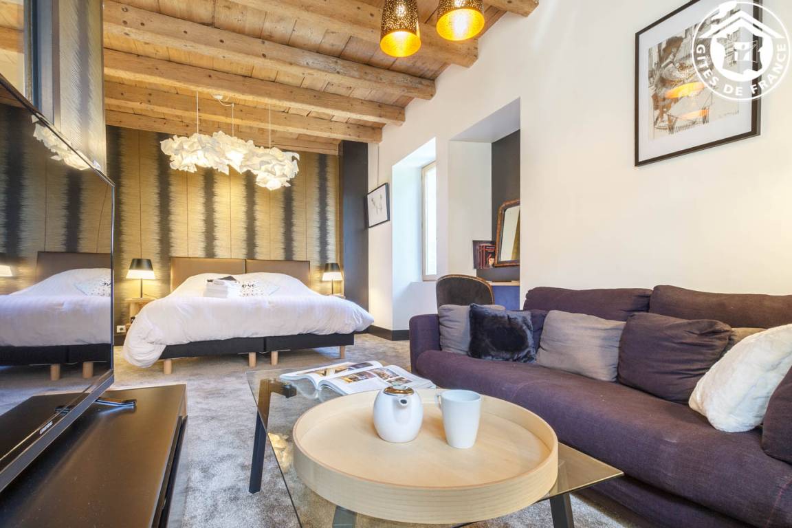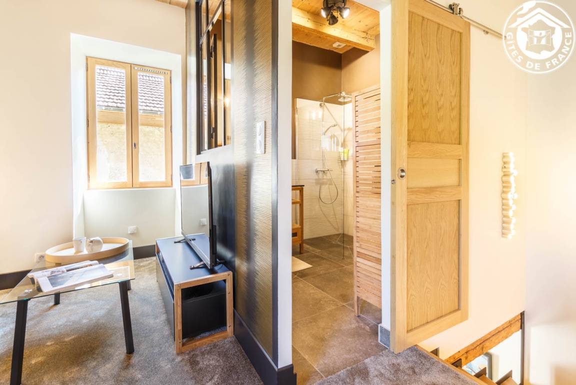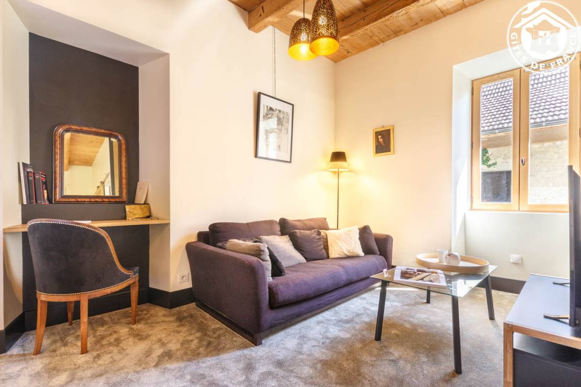 3 Gîtes im Haus des Besitzers. Erdgeschoss: Wohnzimmer-Küche, Entspannungsbereich, WC. 1. Stock: Schlafzimmer mit Bad und Loungebereich (2 Einzelbetten 90 x 200 cm, verstellbar auf 180 x 200 cm), WLAN + Heimkino + Dockingstation, Badezimmer (Dusche). Private Terrasse + gemeinsamer geschlossener Park. Bettwäsche inklusive + gemachte Betten + Hauswäsche inklusive. Skifahren Le Revard 20 km, La Féclaz 27 km. Strand 600m entfernt. Pool & Golf 4,5 km