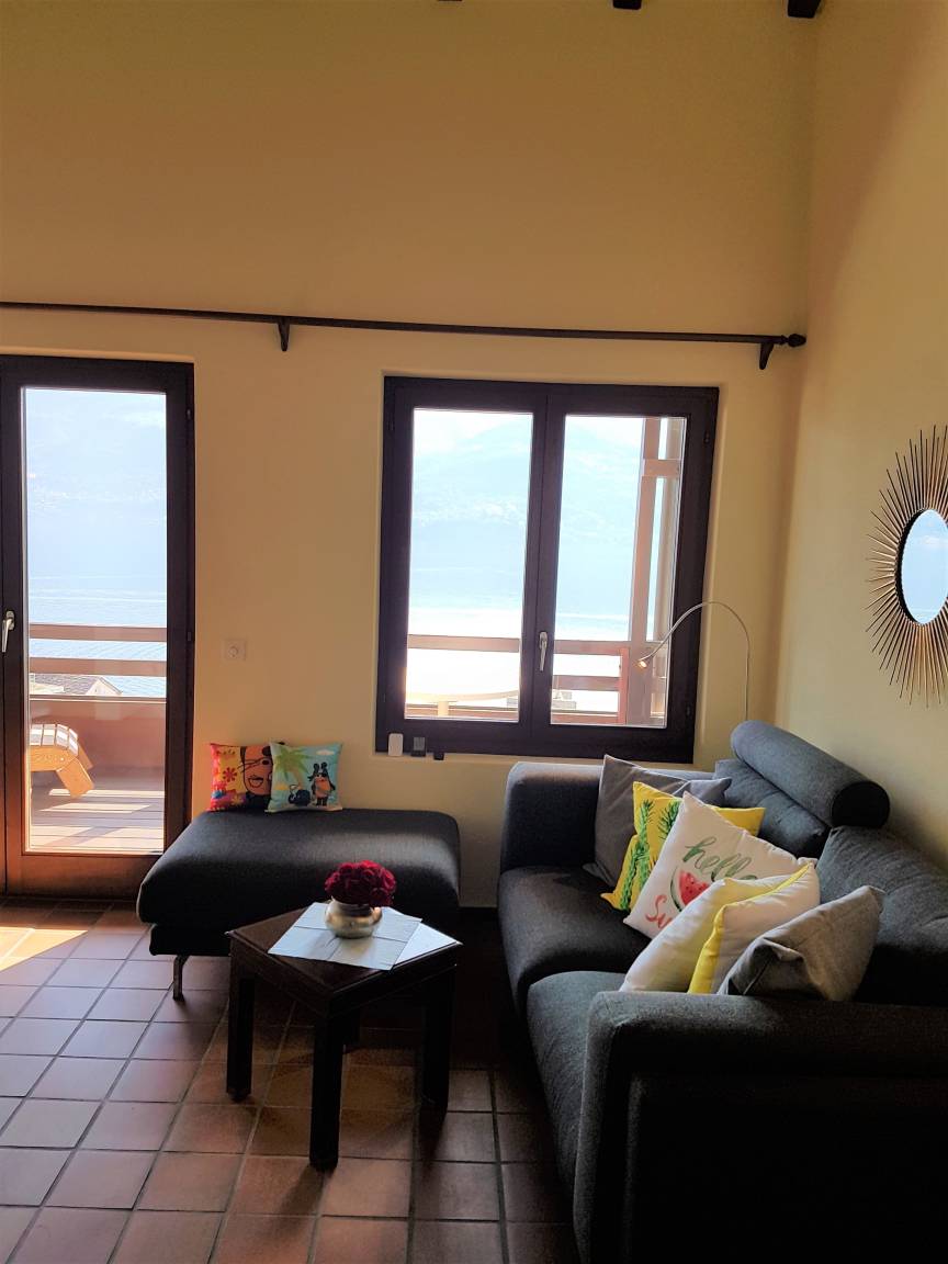 Die Maisonette-Wohnung mit den zwei Terrassen und einem wunderbaren Blick auf den Lago Maggiore Richtung Italien und den Schweizer Bergen liegt ganz in der Nähe der fussläufig erreichbaren herrlichen Seepromenade. Aufgrund der bevorzugten Lage im Appartementhaus in der 5. Etage, das auf einer Anhöhe von etwa 100 Meter entfernt von der Uferstrasse liegt, bekommen Sie vom quirligen Leben um sie herum allerdings nur wenig mit.