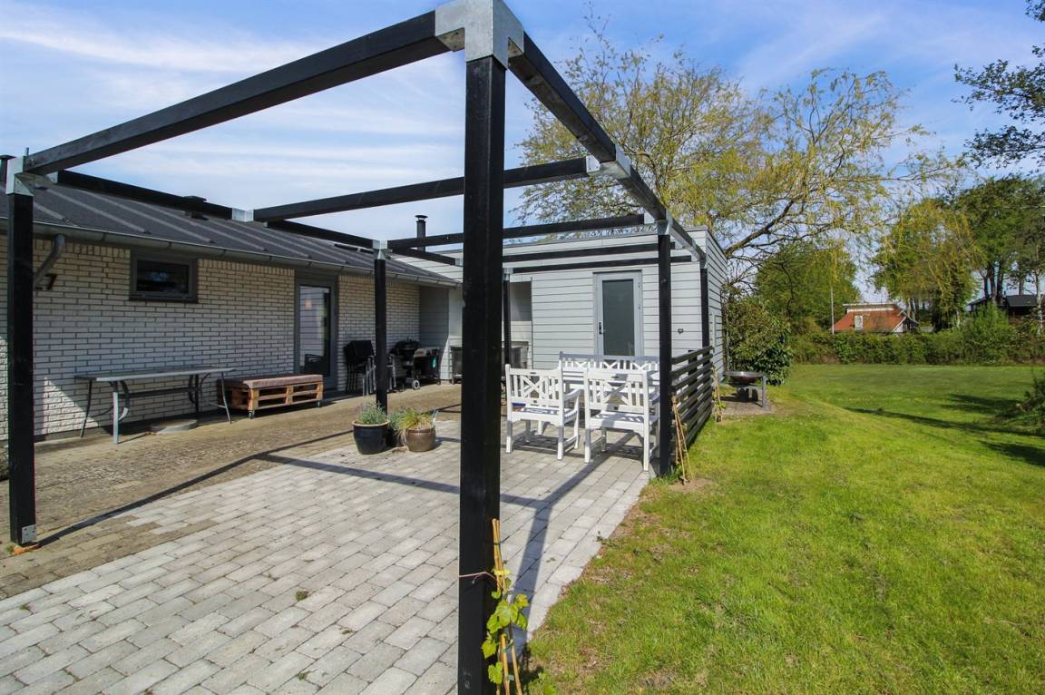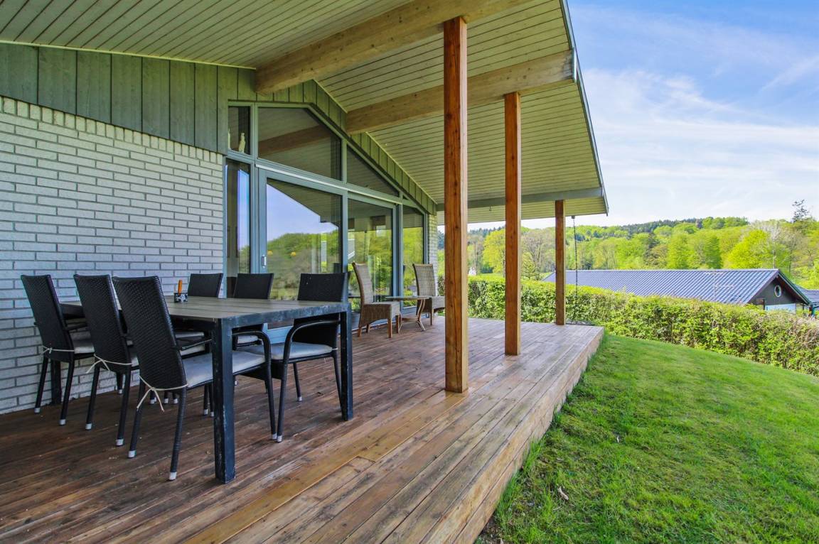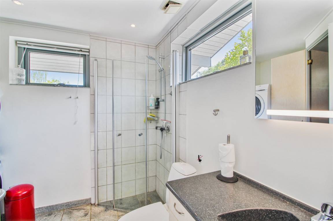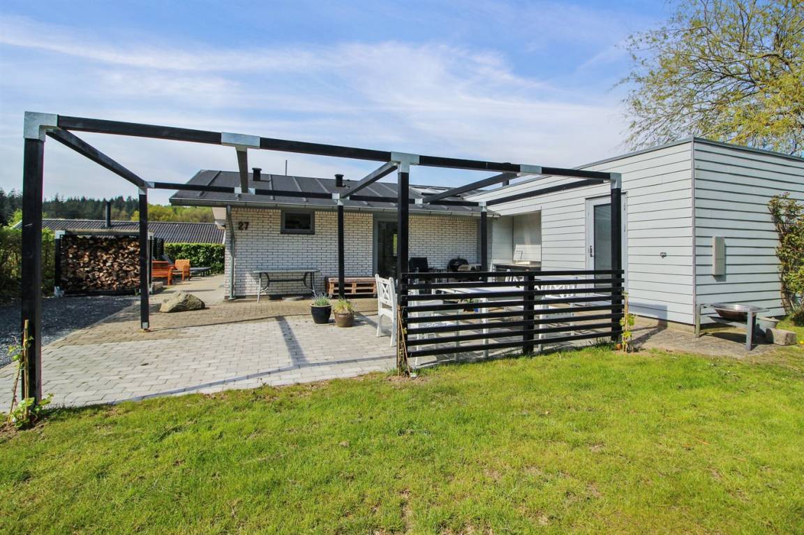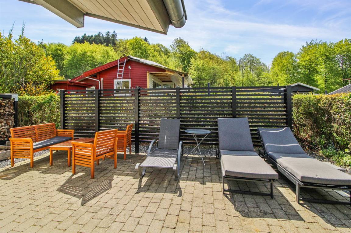 DraußenDie Ferienunterkunft liegt auf einem 600 m² großen Naturgrundstück. Die Entfernung zum Fjord beträgt 250 m. Es gibt einen Badesteg in der Nähe. Die nächste Einkaufsmöglichkeit liegt 4000 m entfernt. Es steht ein 40 m² Terrassenareal zur Verfügung. Außerdem gibt es 21 m² überdachte Terrasse. Geräteraum. Außenspüle. Außen-Reinigungstisch. Parkplatz auf dem Grundstück.