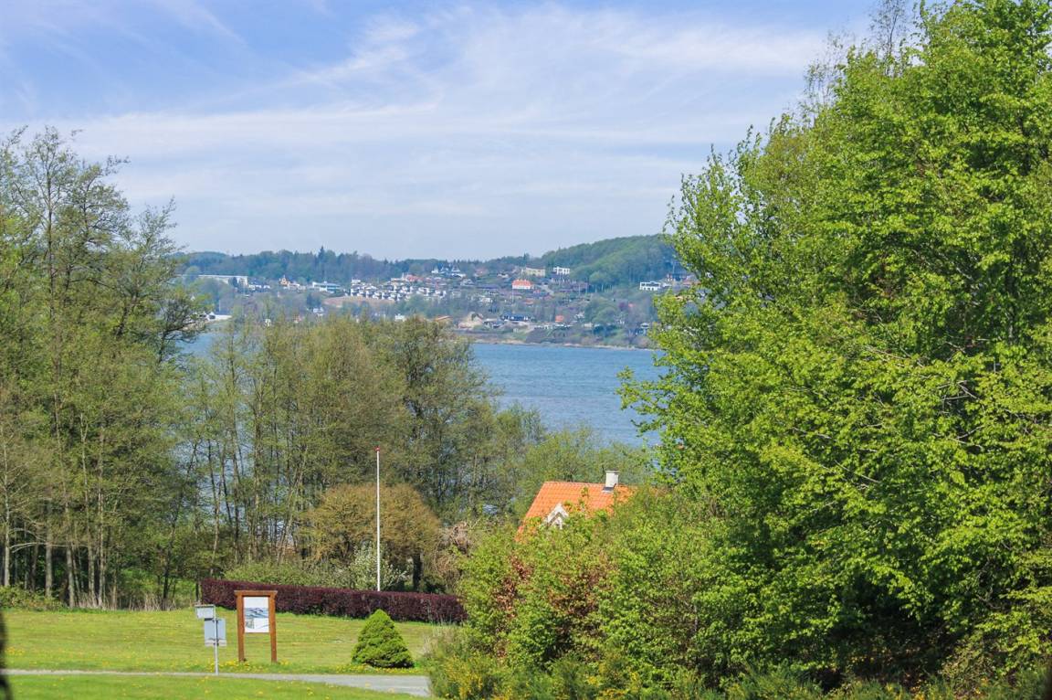 Schönes Ferienhaus mit Aussicht auf den Fjord in einem ruhigen Ferienhausgebiet nur 250 m von einem schönen Badestrand mit Badesteg entfernt gelegen. Großer Spielplatz unterhalb des Hauses.