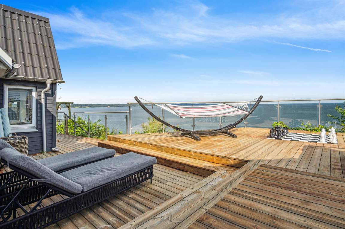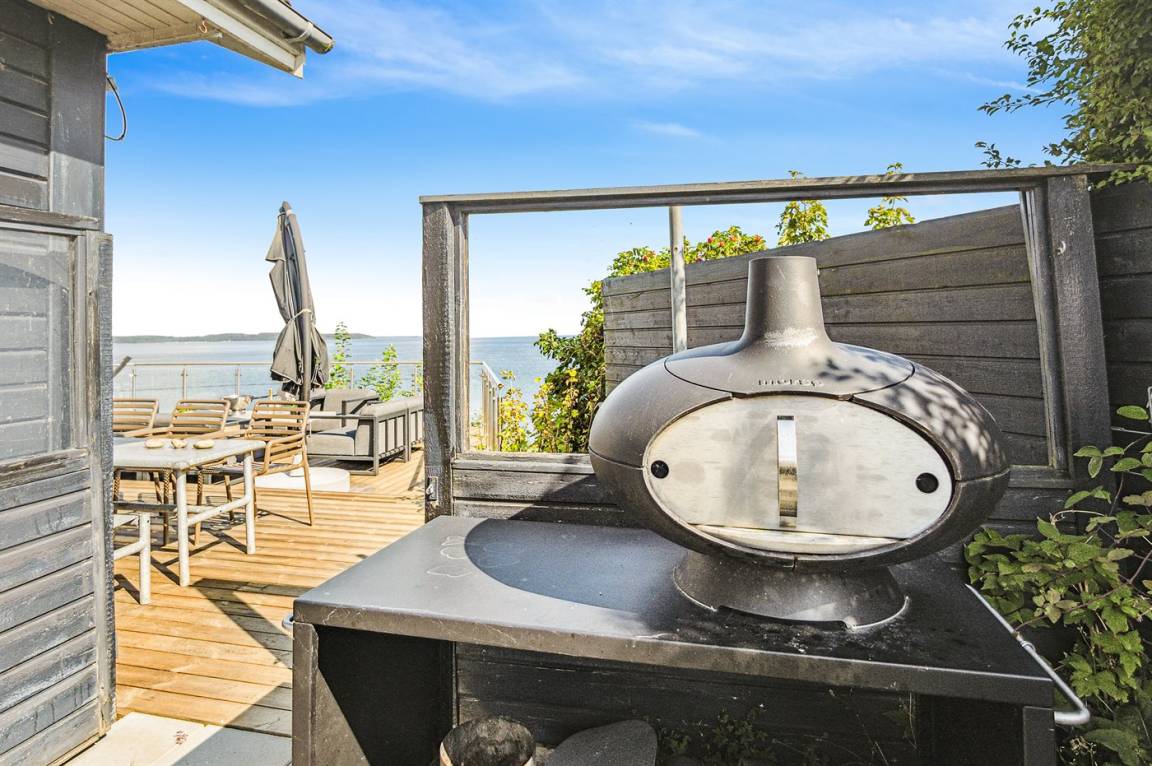 DraußenDie Ferienunterkunft liegt auf einem 1200 m² großen Naturgrundstück. Das Grundstück ist eingezäunt. Die Entfernung zum Meer beträgt 5 m. Die nächste Einkaufsmöglichkeit liegt 3500 m entfernt. Es steht ein offenes Terrassenareal zur Verfügung.Balkon im Obergeschoss.Lagerfeuerstelle. Außensauna. Außendusche. An Sommerabenden sorgt der Außenkamin für eine gemütliche Atmosphäre. Es steht ein Grill zur Verfügung. Parkplatz auf dem Grundstück.