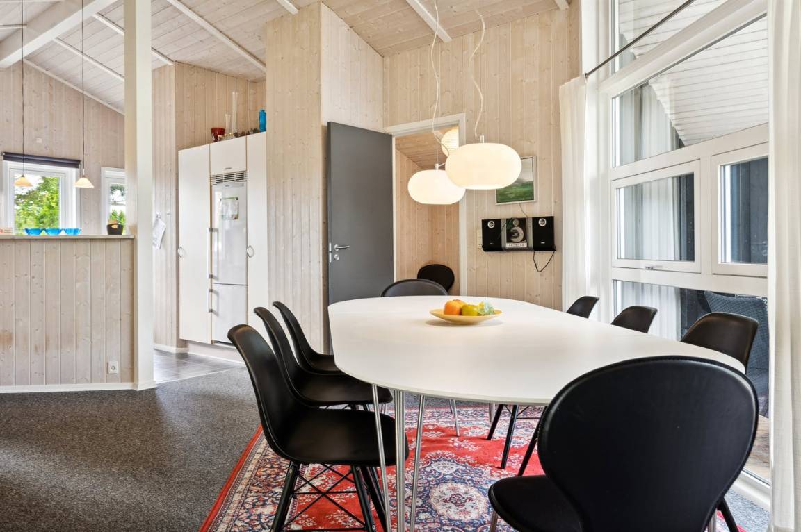 Innen präsentiert sich das Ferienhaus hell und modern mit einer sehr guten Raumaufteilung, sodass es sich ideal für beispielsweise eine Familie mit 2-3 Kindern oder 2 Familien eignet. Es besteht auch die Möglichkeit, die Großeltern mit in den Urlaub einzuladen. Das Ferienhaus bietet 4 gute Schlafzimmer an und der Mittelpunkt des Hauses ist der große, schöne Küchen-/Essbereich, der offen mit dem Wohnzimmer verbunden ist. Hier gibt es hohe Decken mit viel Lichteinfall – ein idealer Ort für Brettspiele u. a. m. falls sich das Wetter mal nicht von seiner besten Seite zeigt.
