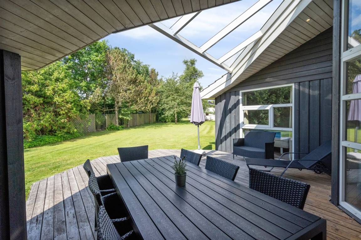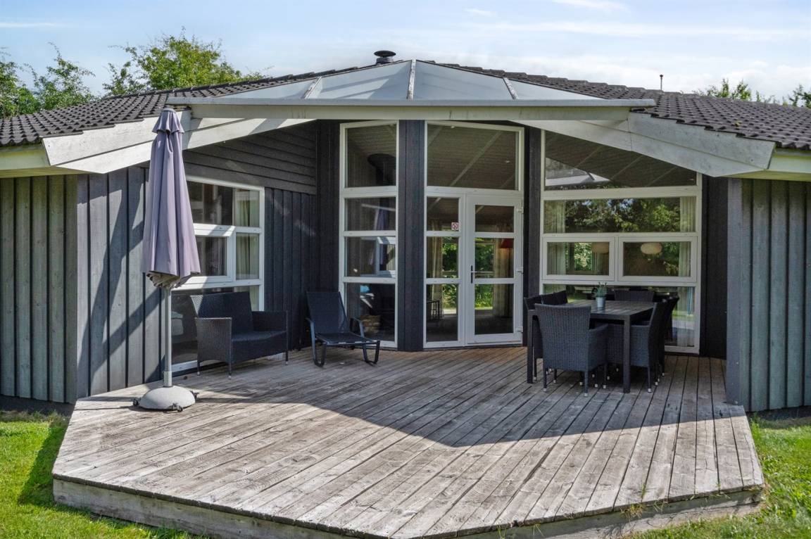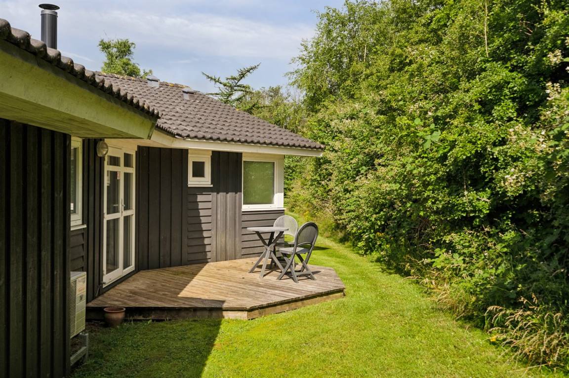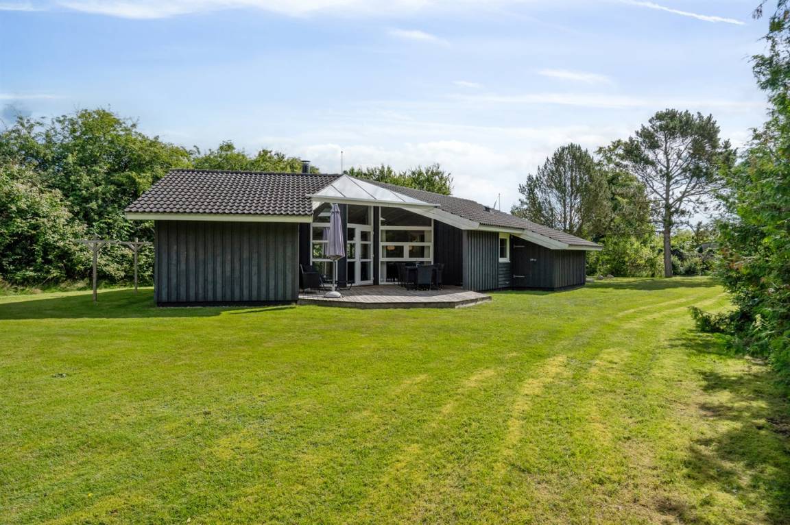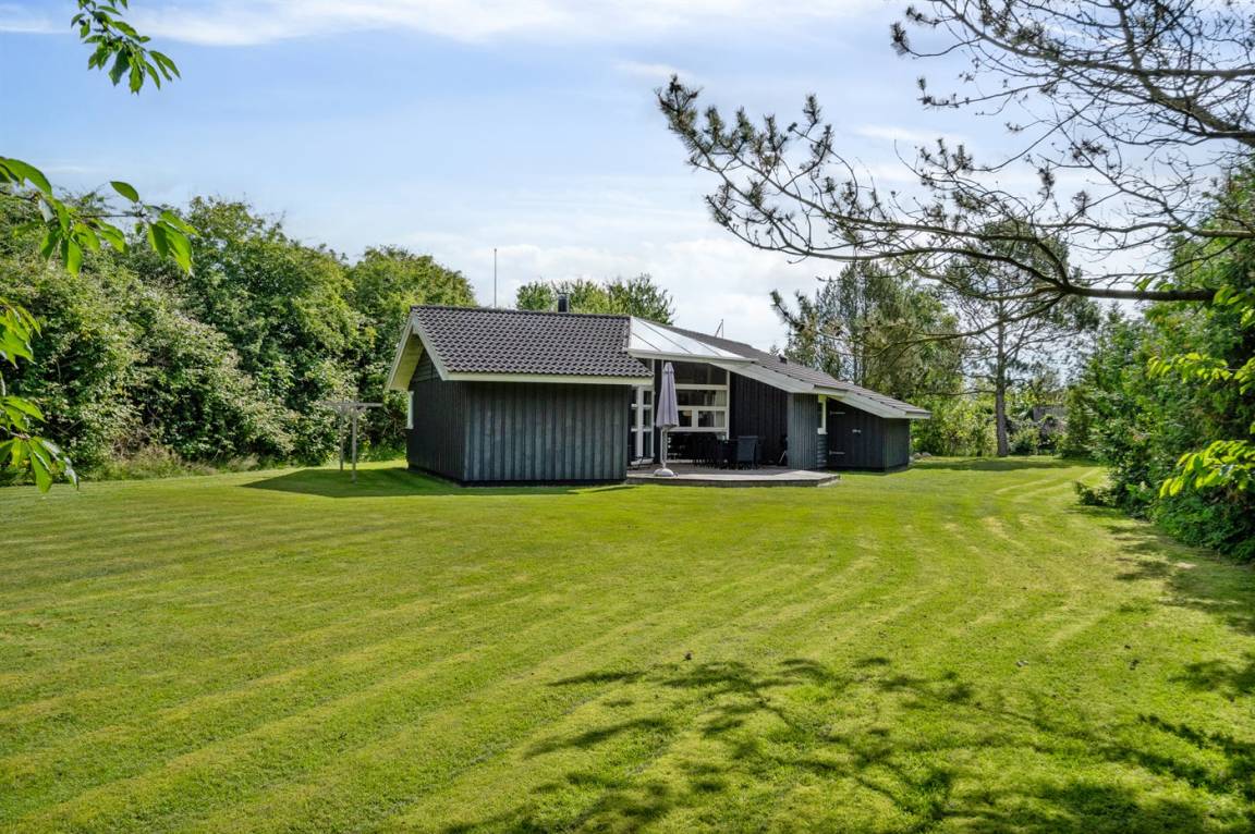 Der schöne Garten ist ein herrlicher Ort um sich zu Entspannen. Das Grundstück liegt ungestört und hier können sich die Kinder auf der großen Rasenfläche austoben. Das Ferienhaus verfügt über einen schönen Terrassenbereich, der teilweise überdacht ist, sodass man die schönen Sommerabende genießen kann, selbst wenn der Tau fällt. Auf der Terrasse kann man die Ruhe in vollen Zügen genießen, und es gibt immer die Möglichkeit, eine schöne, windgeschützte Ecke zu finden.