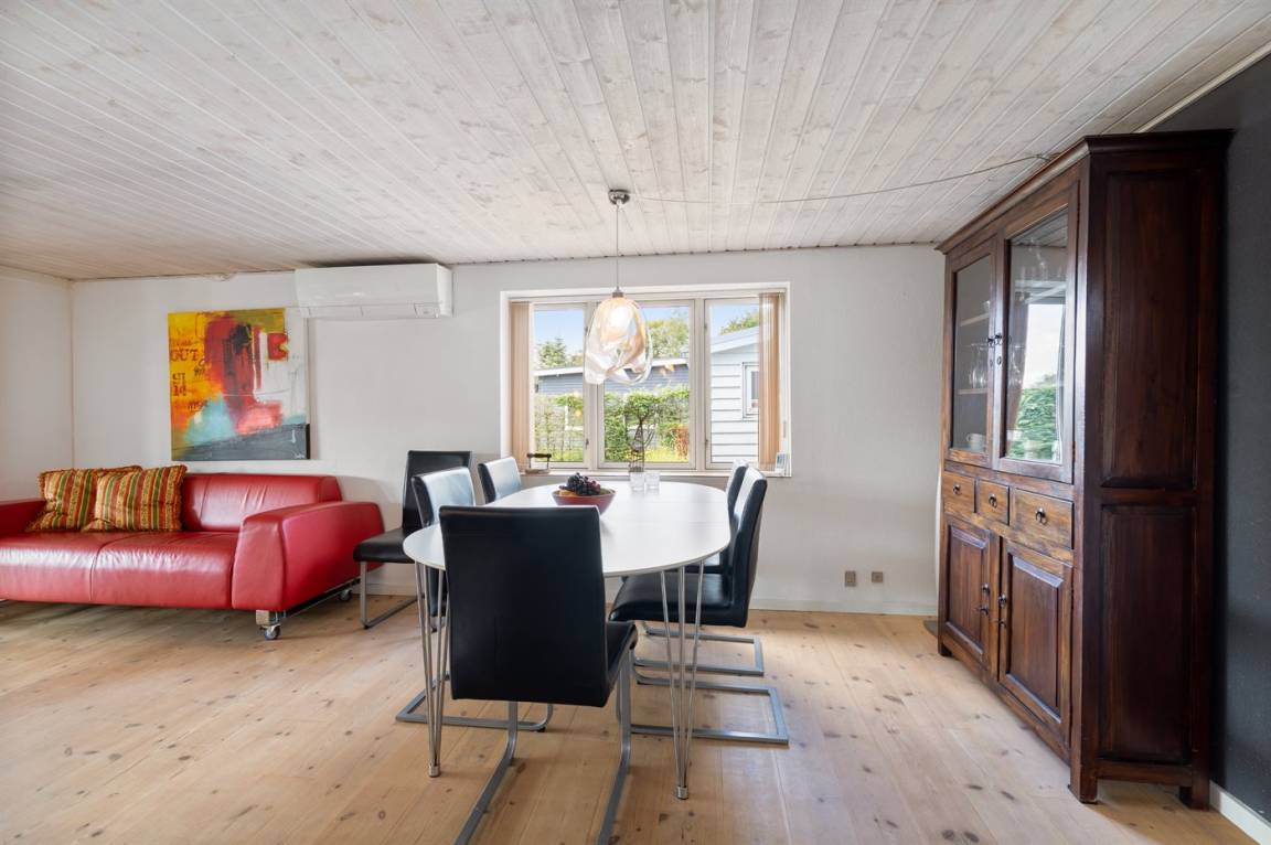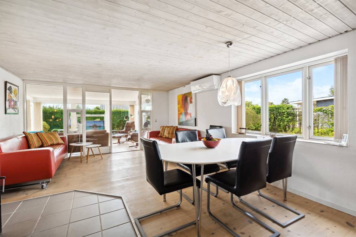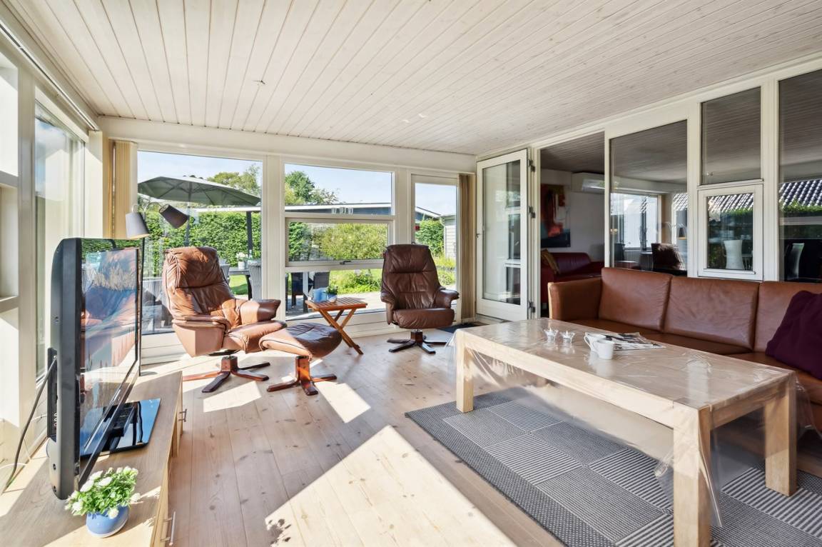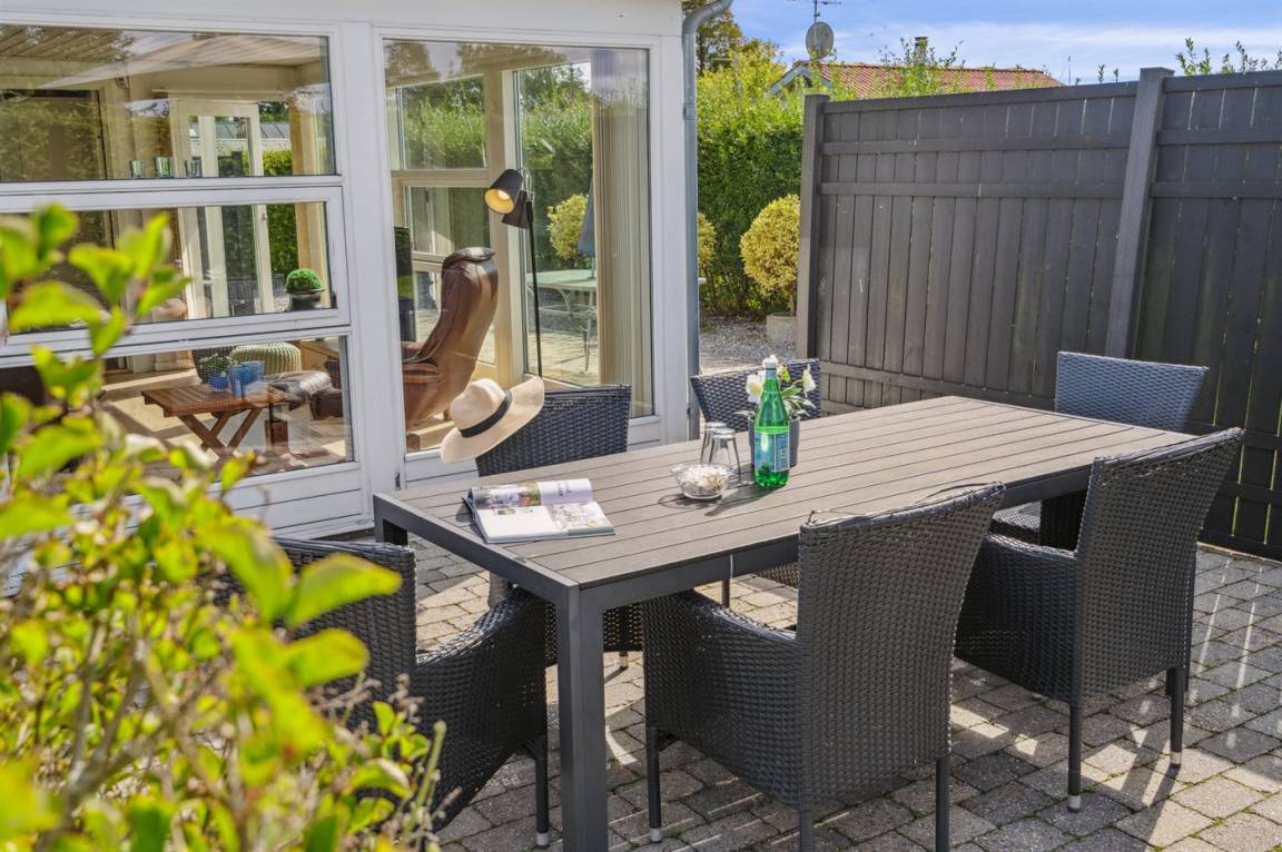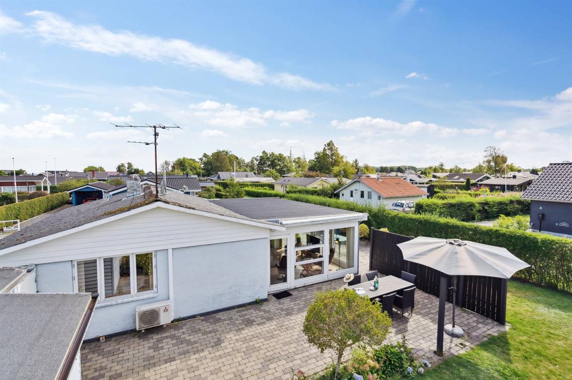 Geräumiges Ferienhaus am Ende einer Sackgasse nahe am Wasser und schönem Badestrand gelegen. Das Haus liegt auf einem kleineren abgeschirmten Grundstück mit ungeniert gelegenen Terrassenarealen und einem Gästehaus mit eigenem Bad und Toilette mit 2 der Schlafplätze.